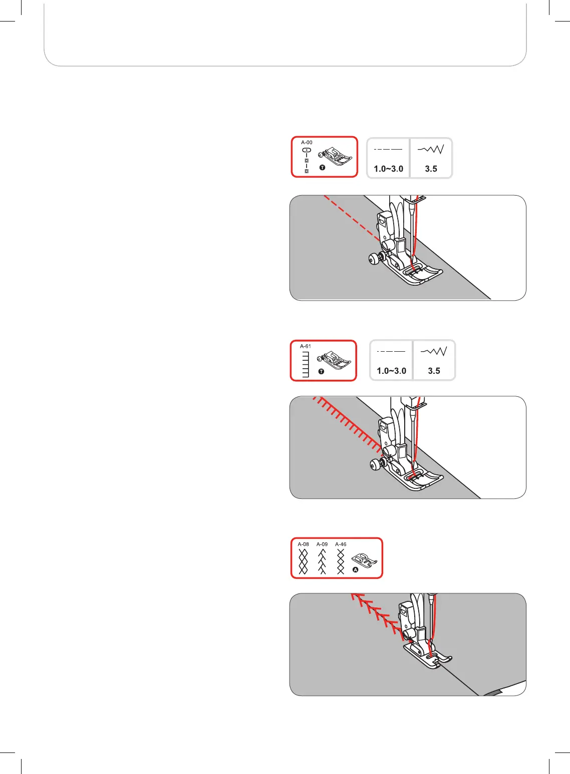 • Place the center of the presser foot on the seam line of