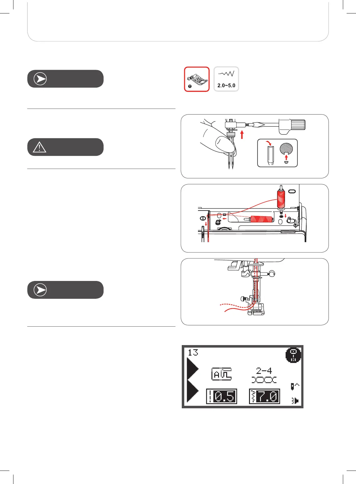 • Follow the instructions for single-needle threading