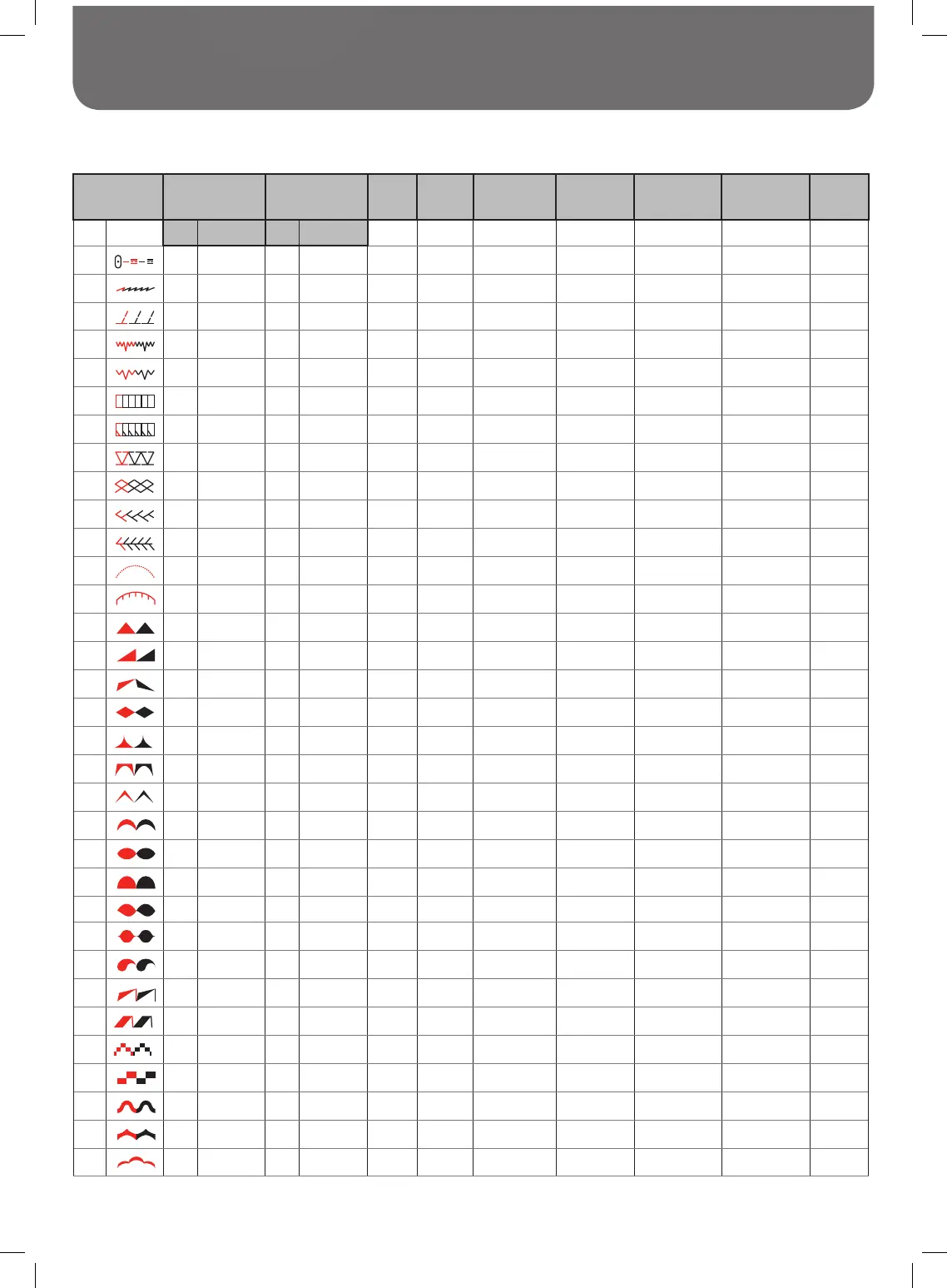 Stitch Pattern Width (mm) Length (mm) Tension Presser