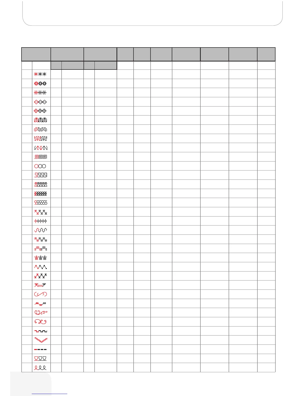 Stitch Pattern Width (mm) Length (mm) Tension Presser