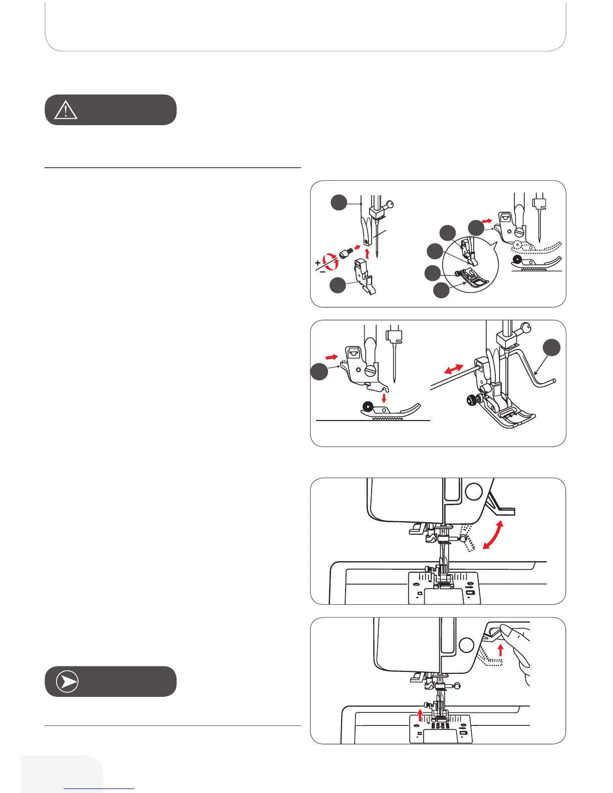 • Lower the presser foot holder (b) until the cut-out (c) is