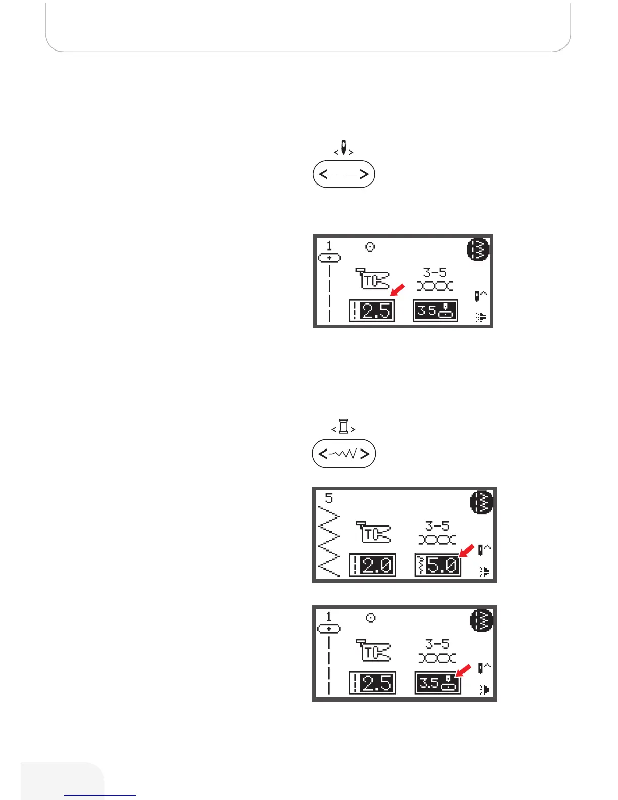 • The stitch width can be regulated by pressing the stitch