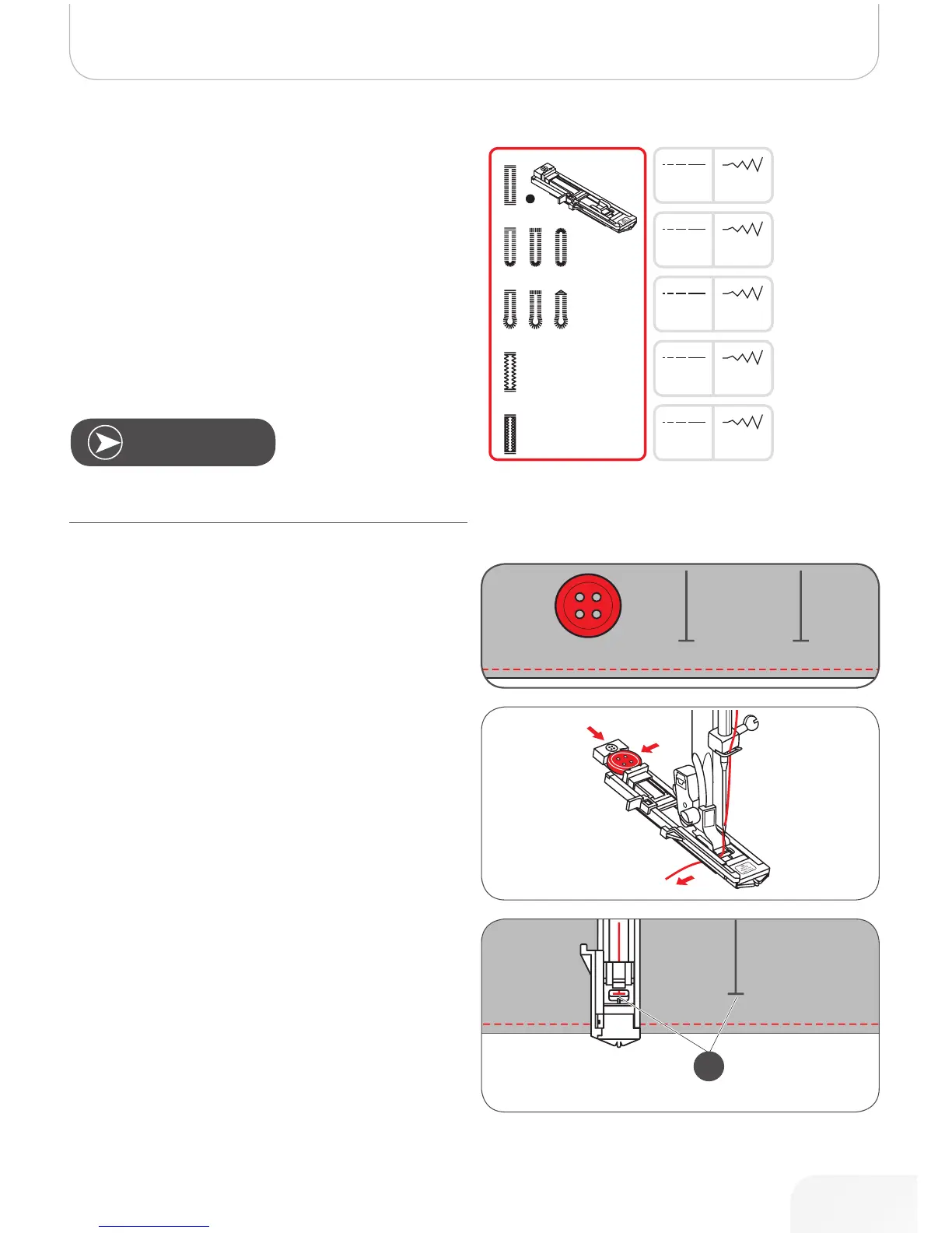 • Attach the buttonhole foot, then pull out the button