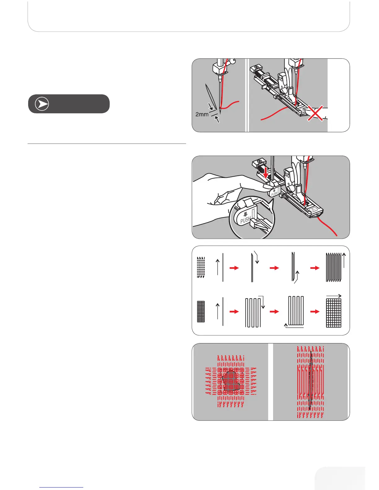 Position the fabric so that the needle is 2mm (1/16 inch) in