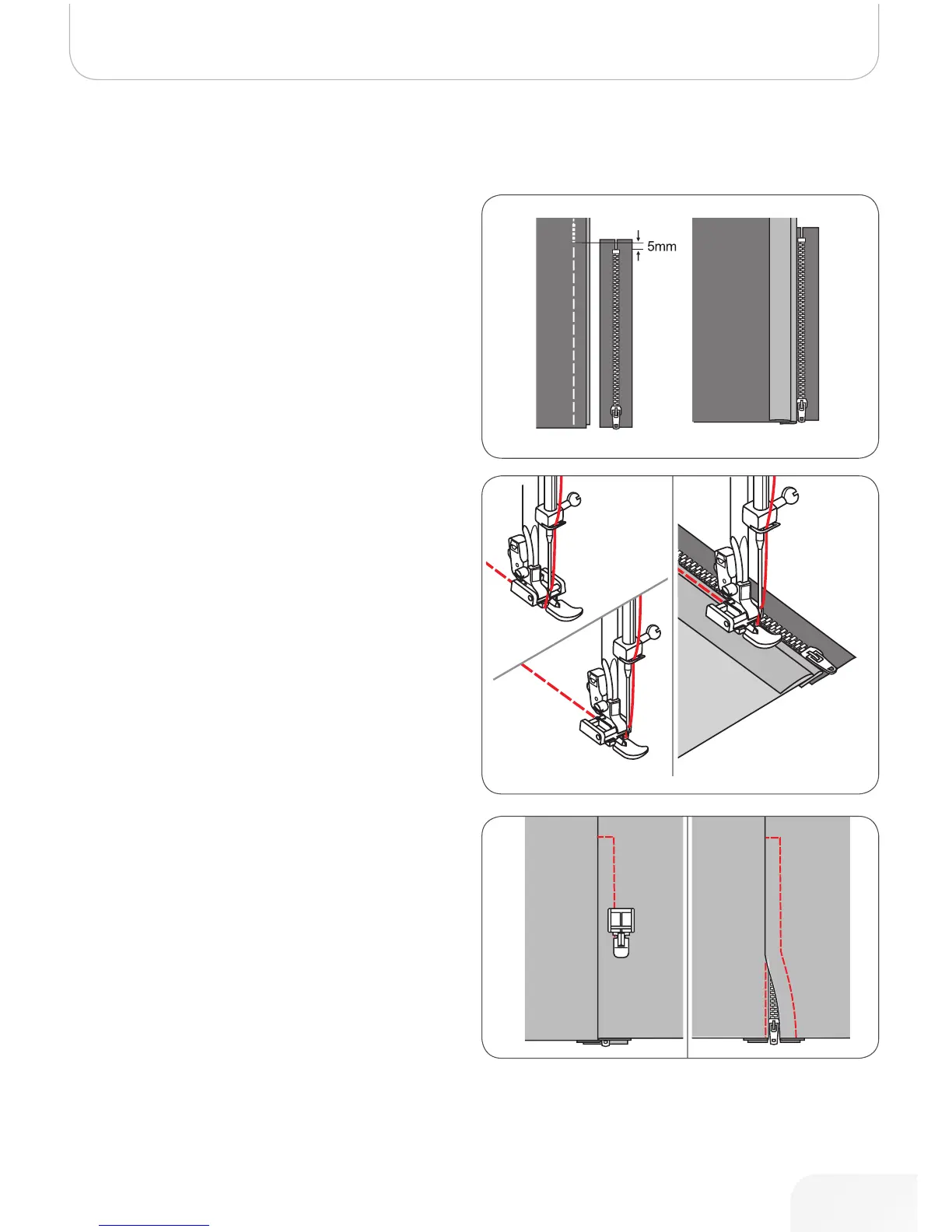 • Stop about 5cm (2 inches) from the top of zipper.