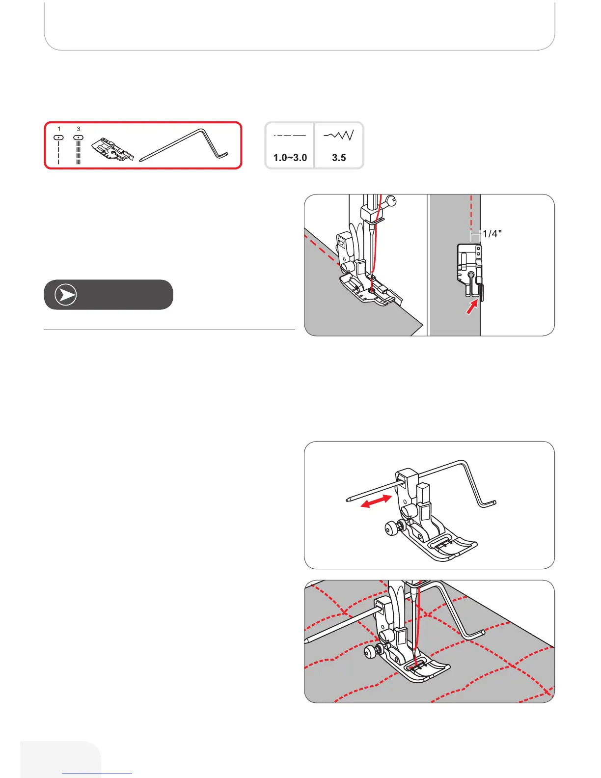 * The 1/4“ quilting foot accessory is optional. It is not included with this machine.