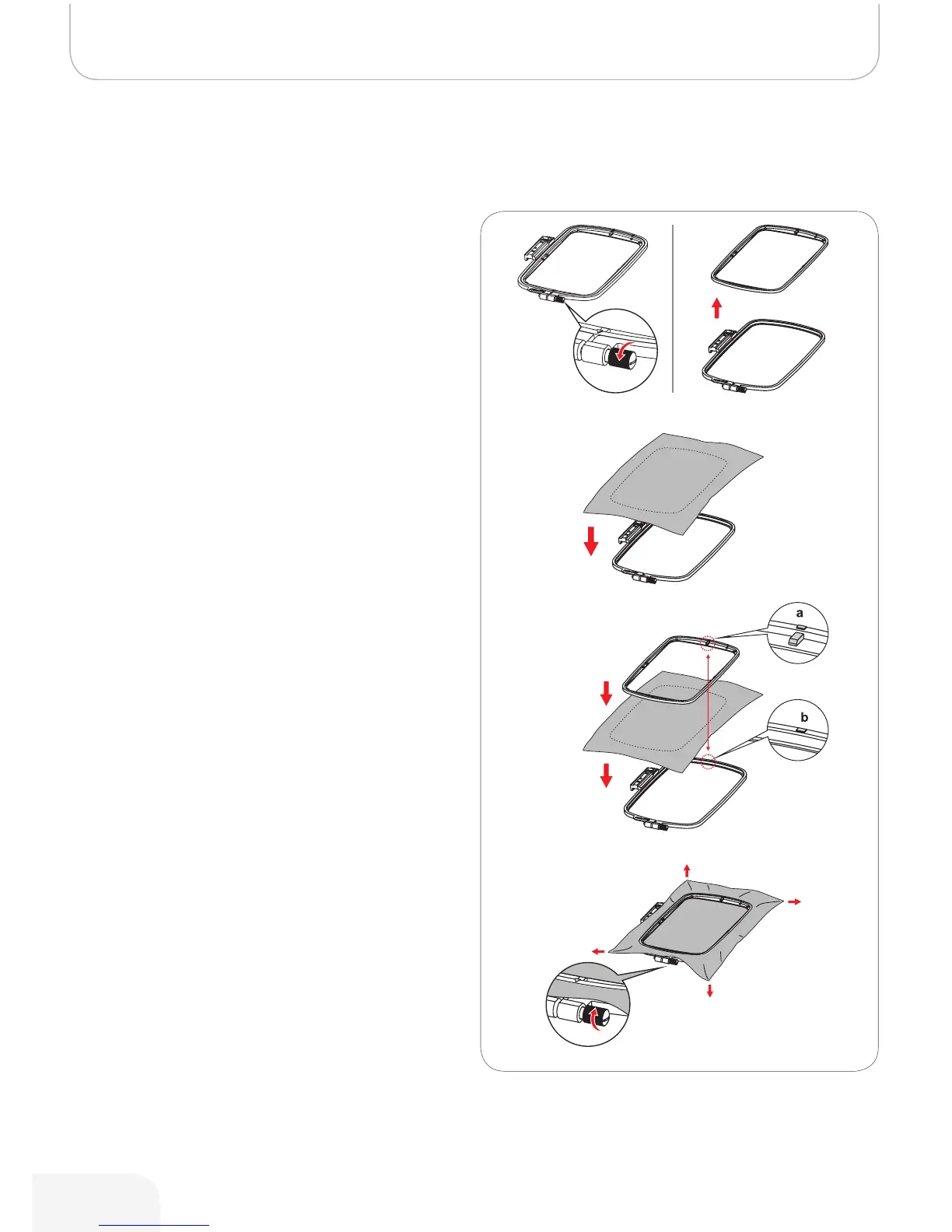 • Align the fabric with the inner hoop (a) and the outer