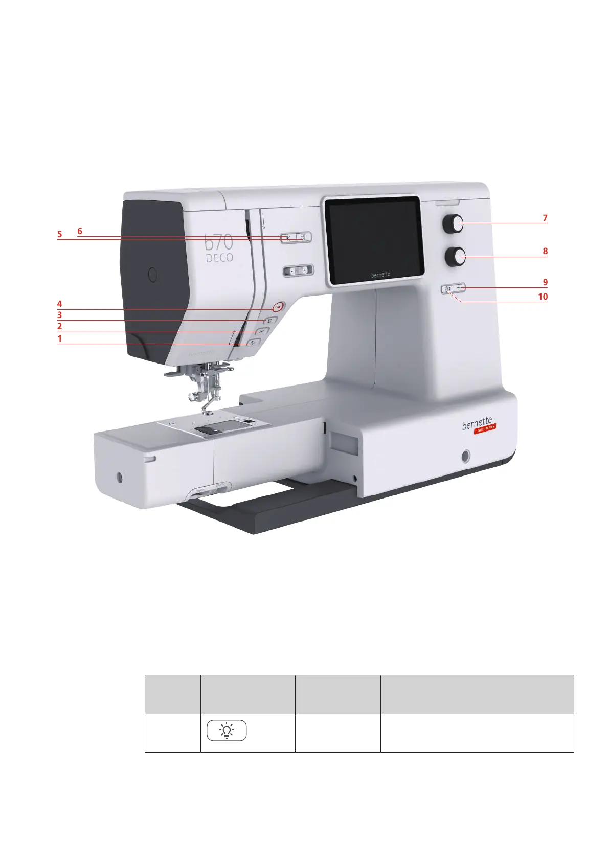3 Presser Foot Up/Down 8 Lower Multi-function Knob