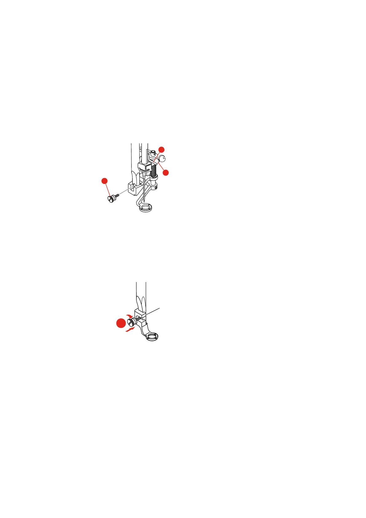 > Attach the Hopper embroidery Foot (JX) to the presser foot bar, making sure that the spring (3) is over