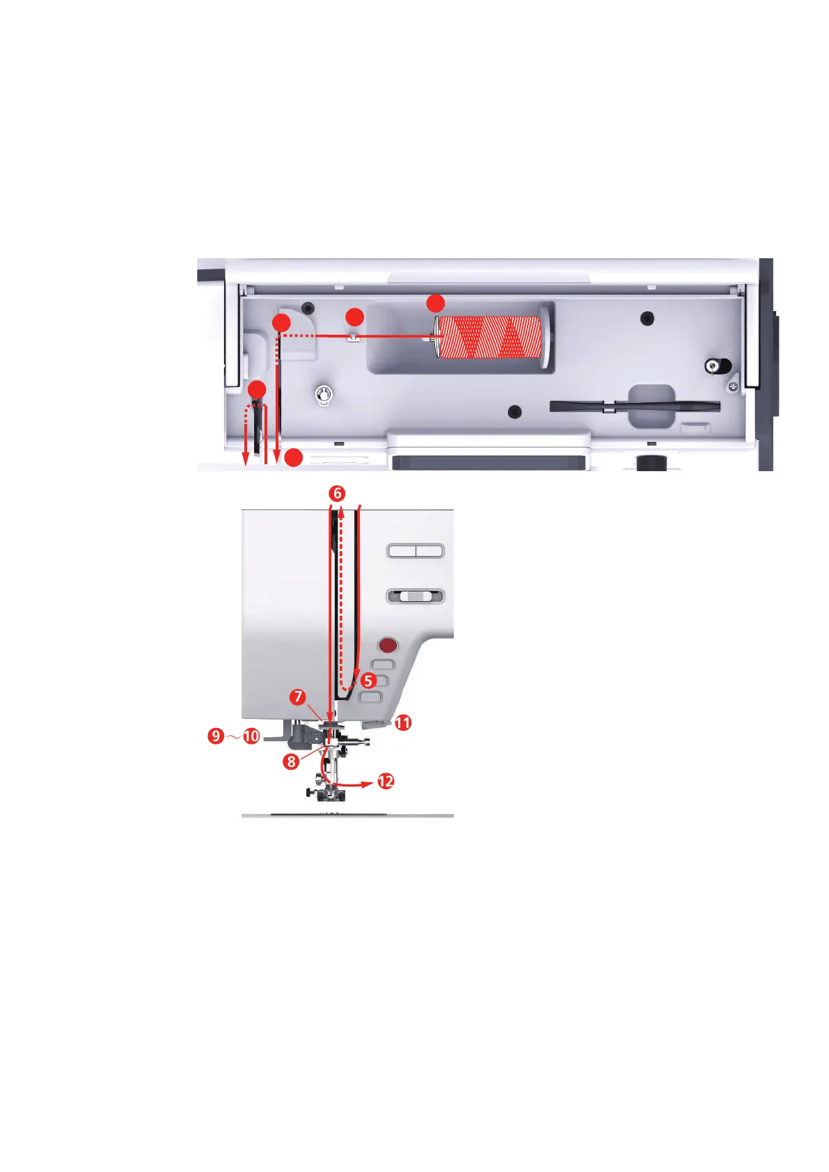 > Place the thread spool on the spool pin so that the thread unwinds clockwise.