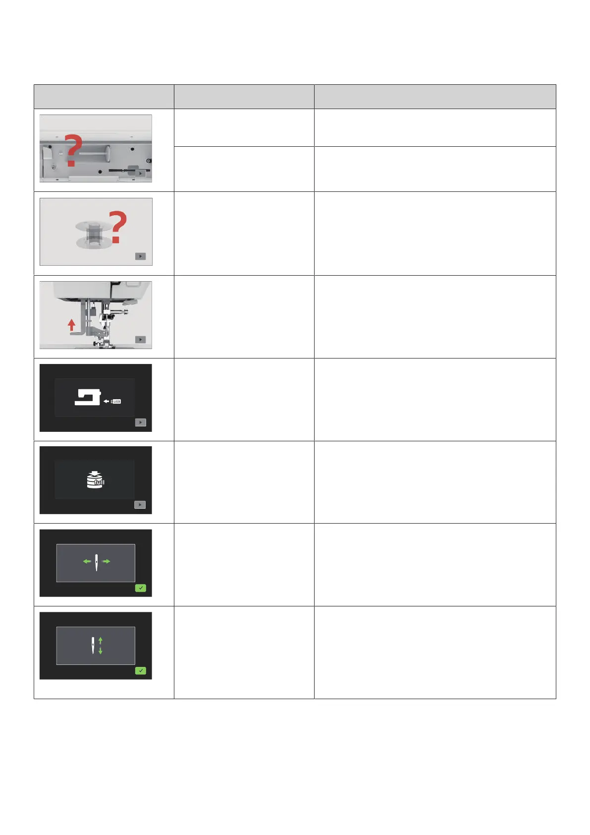 The bobbin thread is used up. > Remove the empty bobbin, wind it again and reinsert it.