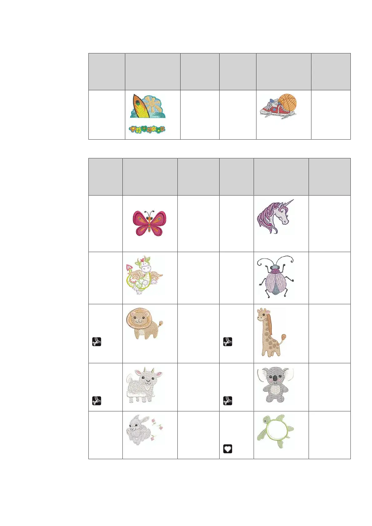 Bernette DECO B70 - Animal Designs List