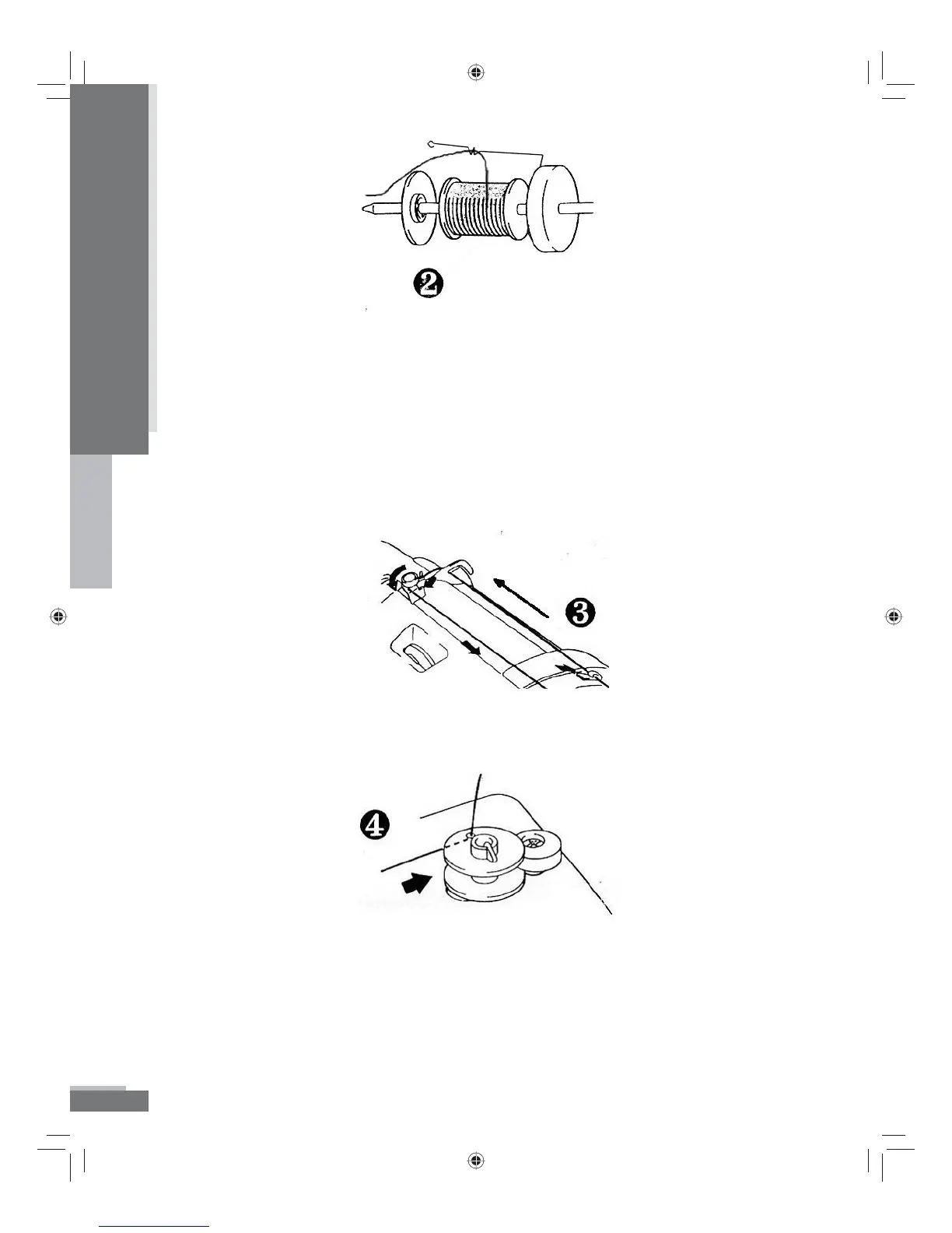4. Place an empty bobbin on the bobbin spindle. Put the thread