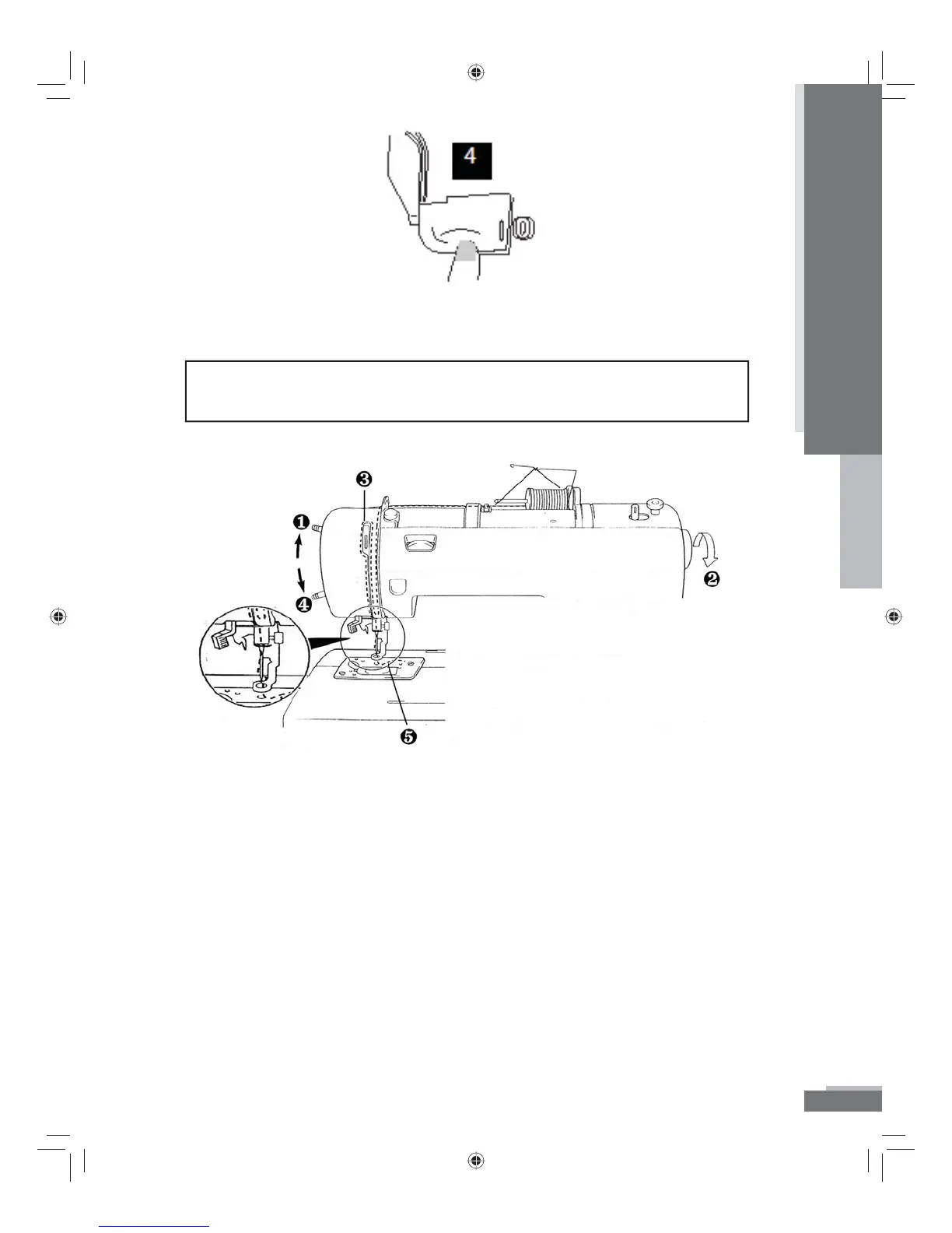 NOTE: There is no need to pull up the lower thread, as it is done automatically.