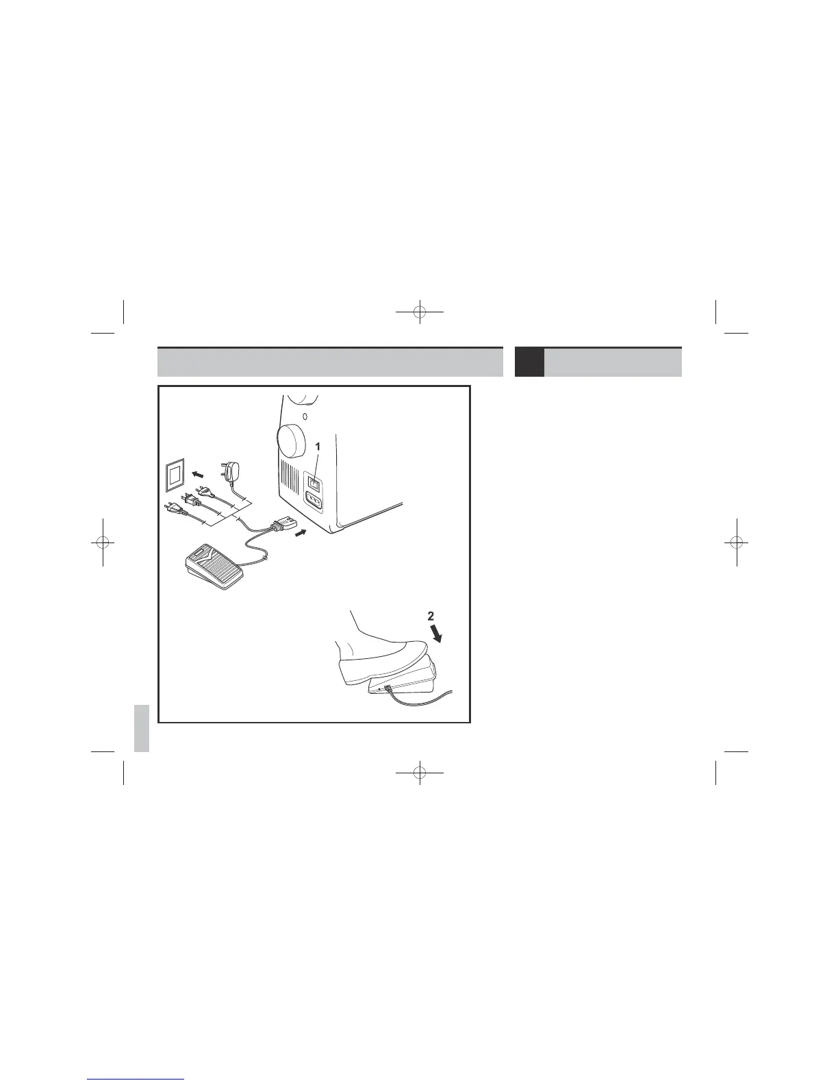 Foot control regulates the sewing speed. (2)