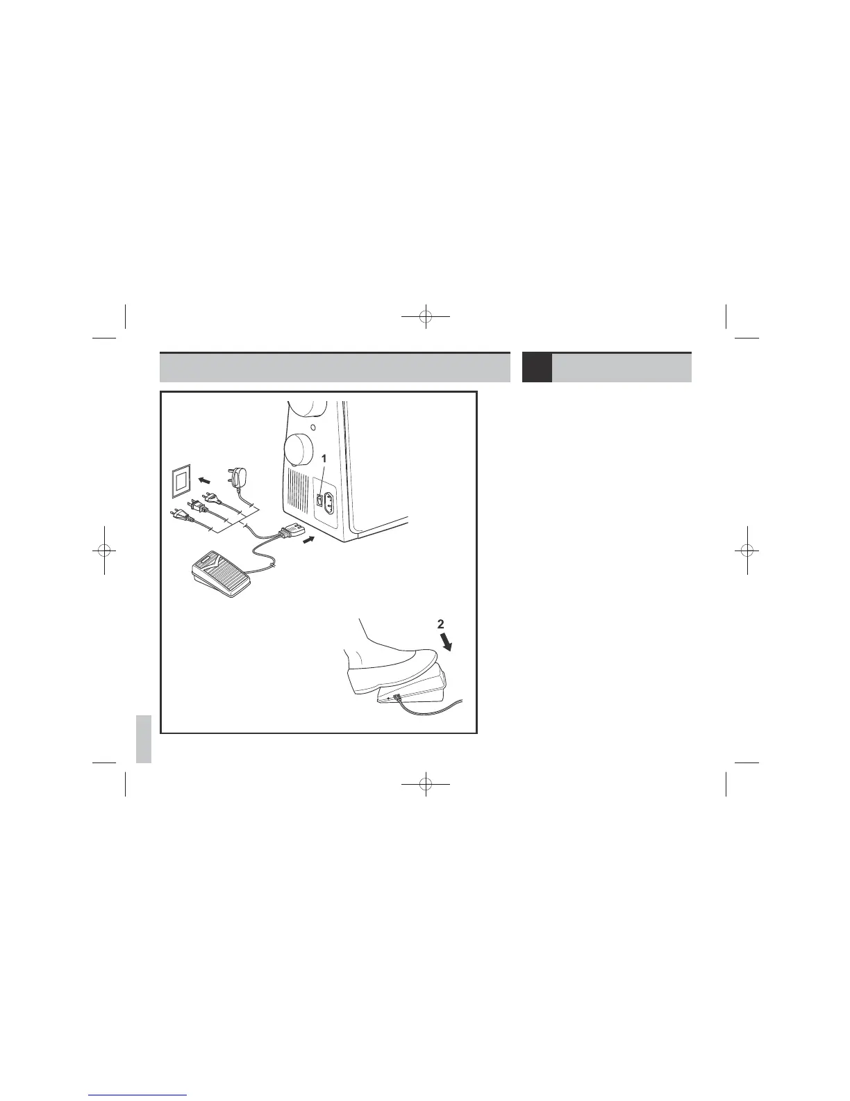 Foot control regulates the sewing speed. (2)