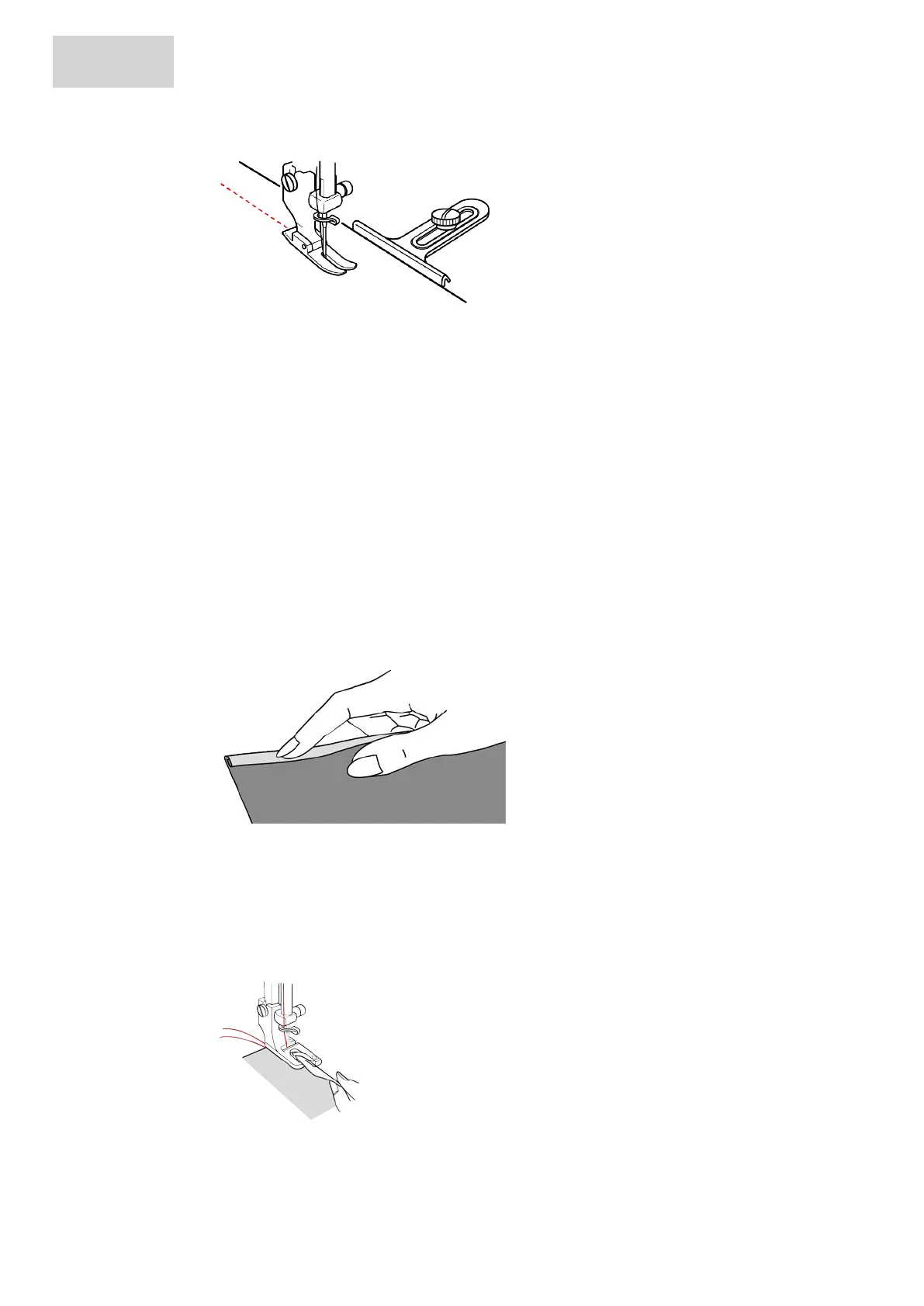 > Guide the fabric edge along the seam guide.