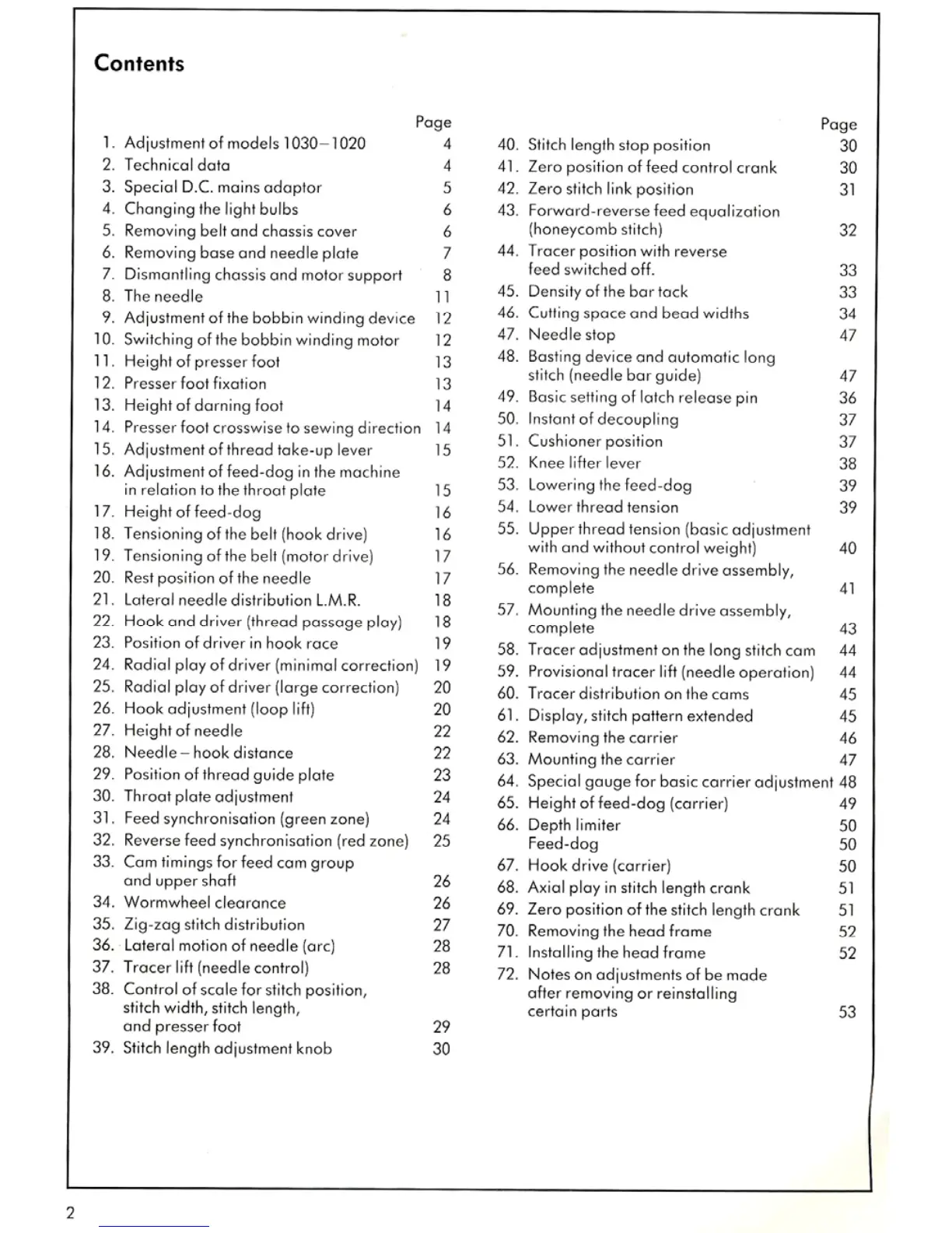 Bernina 1000 - Bernina 1030;1020 - Table of Contents