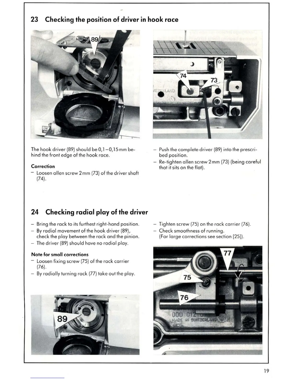 Bernina 1000 - Checking the Position of Driver in Hook Race; Checking Radial Play of the Driver