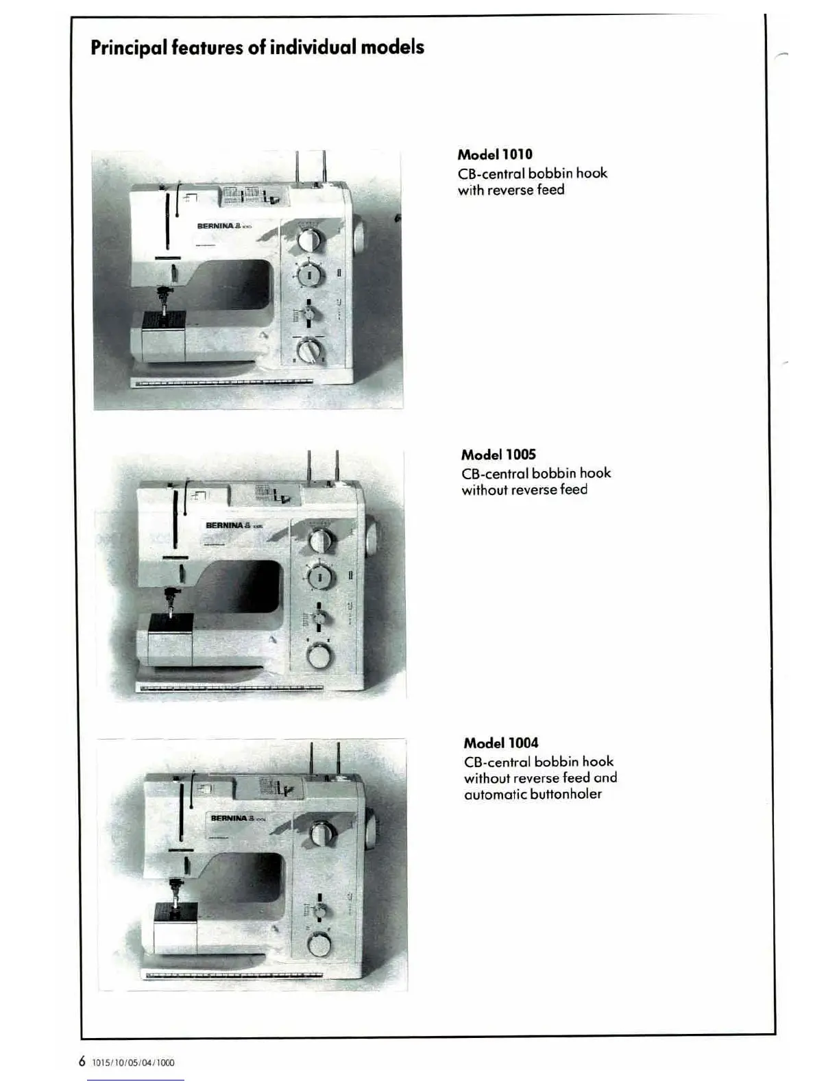 Bernina 1000 - Principal Features of Individual Models