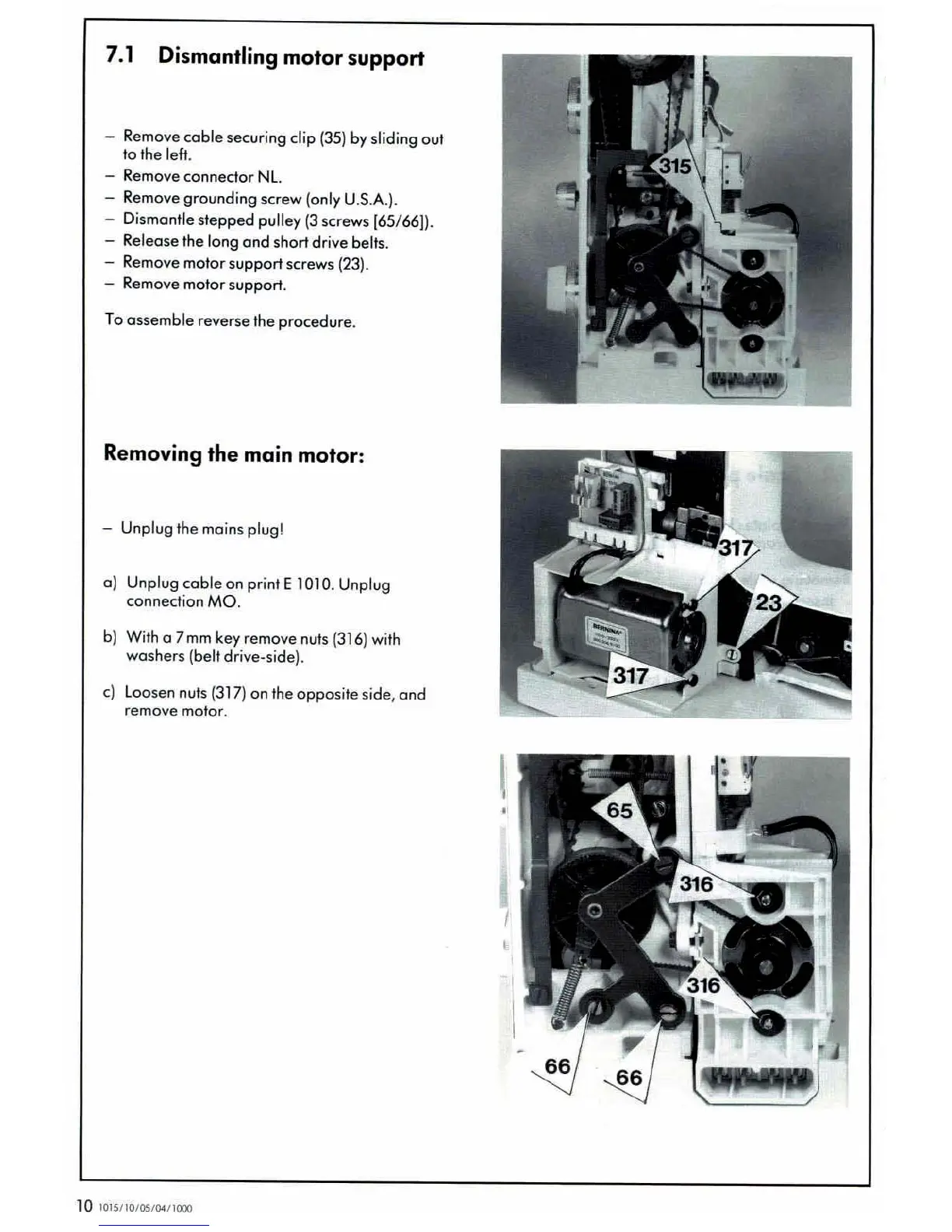 Bernina 1000 - Dismantling Motor Support;Removing the Main Motor