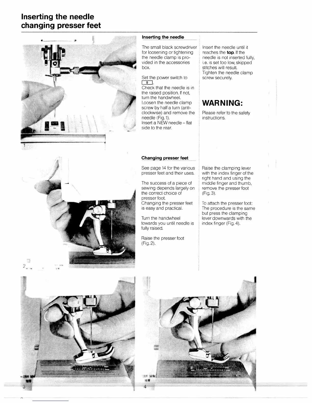 Bernina 1001 - Needles and Presser Feet; Needle Insertion and Changing; Presser Foot Attachment and Removal