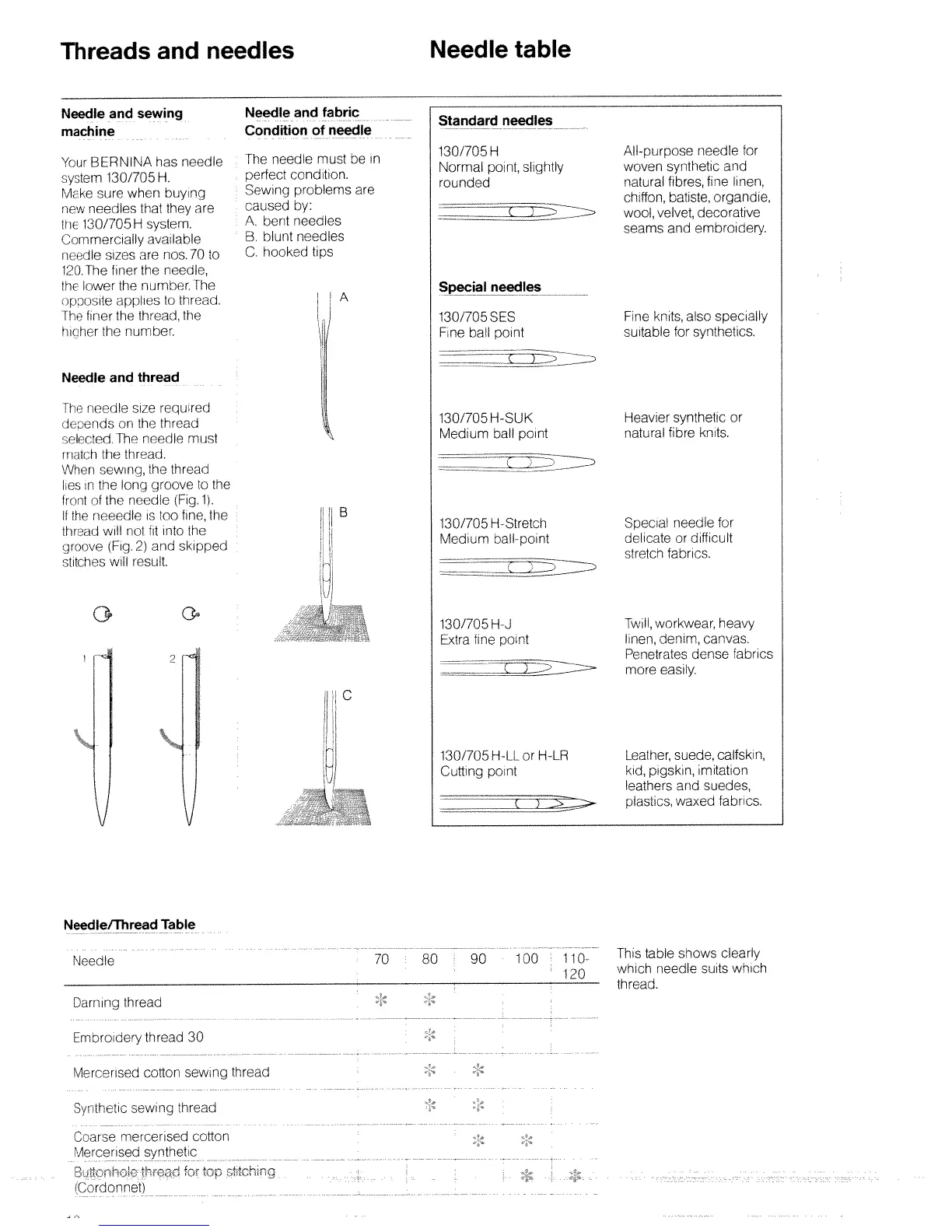 Bernina 1001 - Threads and Needles Guide; Needle System and Selection; Needle;Thread Compatibility Table