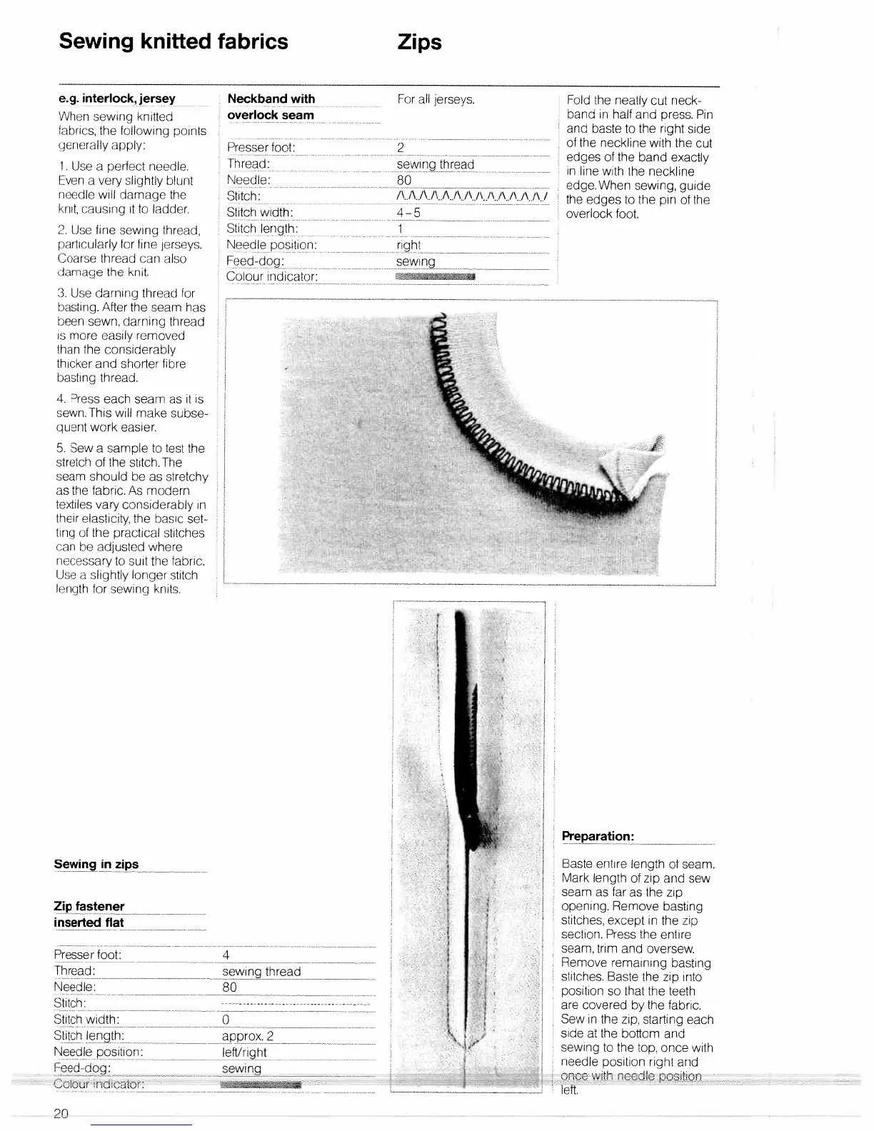 Bernina 1001 - Sewing Knitted Fabrics and Zips; Knitted Fabric Sewing Guidelines; Sewing Zips