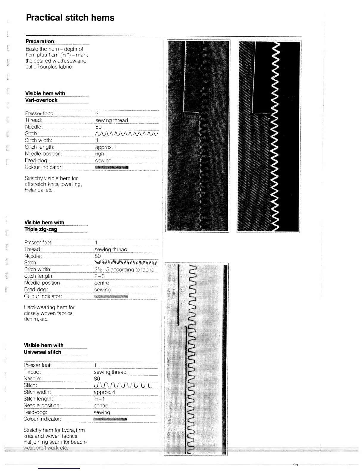 Bernina 1001 - Practical Stitch Hems; Visible Hems with Vari-overlock and Triple Zig-zag; Visible Hems with Universal Stitch