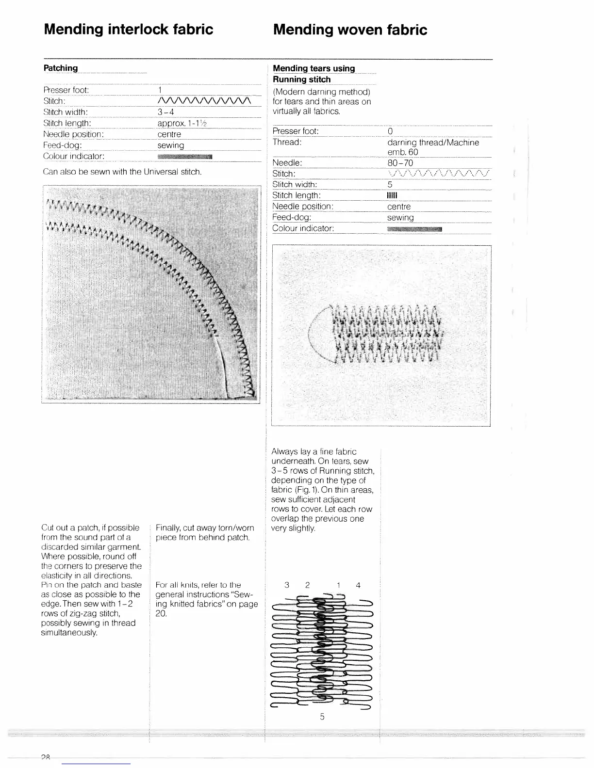 Bernina 1001 - Fabric Mending Techniques; Mending Interlock Fabric (Patching); Mending Woven Fabric (Running Stitch)