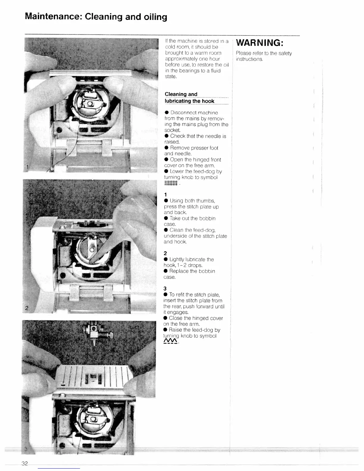 Bernina 1001 - Maintenance: Cleaning and Oiling; Cleaning and Lubricating the Hook
