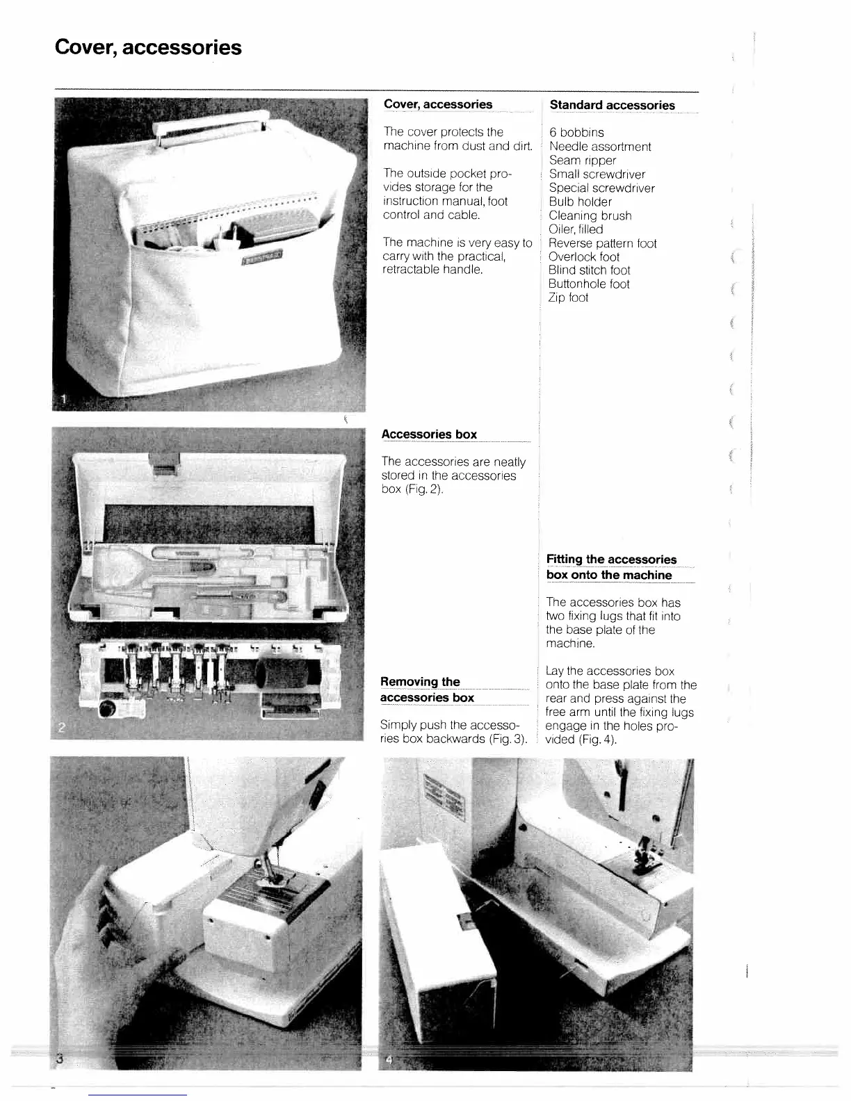 Bernina 1001 - Cover and Accessories Management; Accessories Box Usage