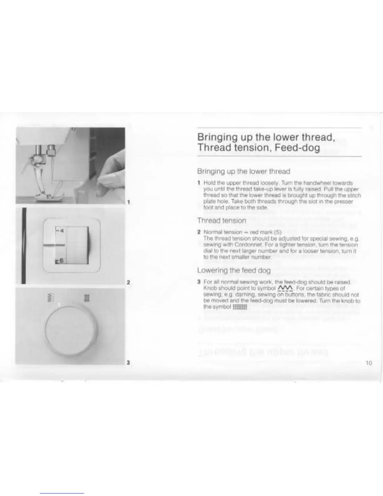 Bernina 1004 - Thread Management and Feed Dog; Bringing Up Lower Thread; Thread Tension Adjustment