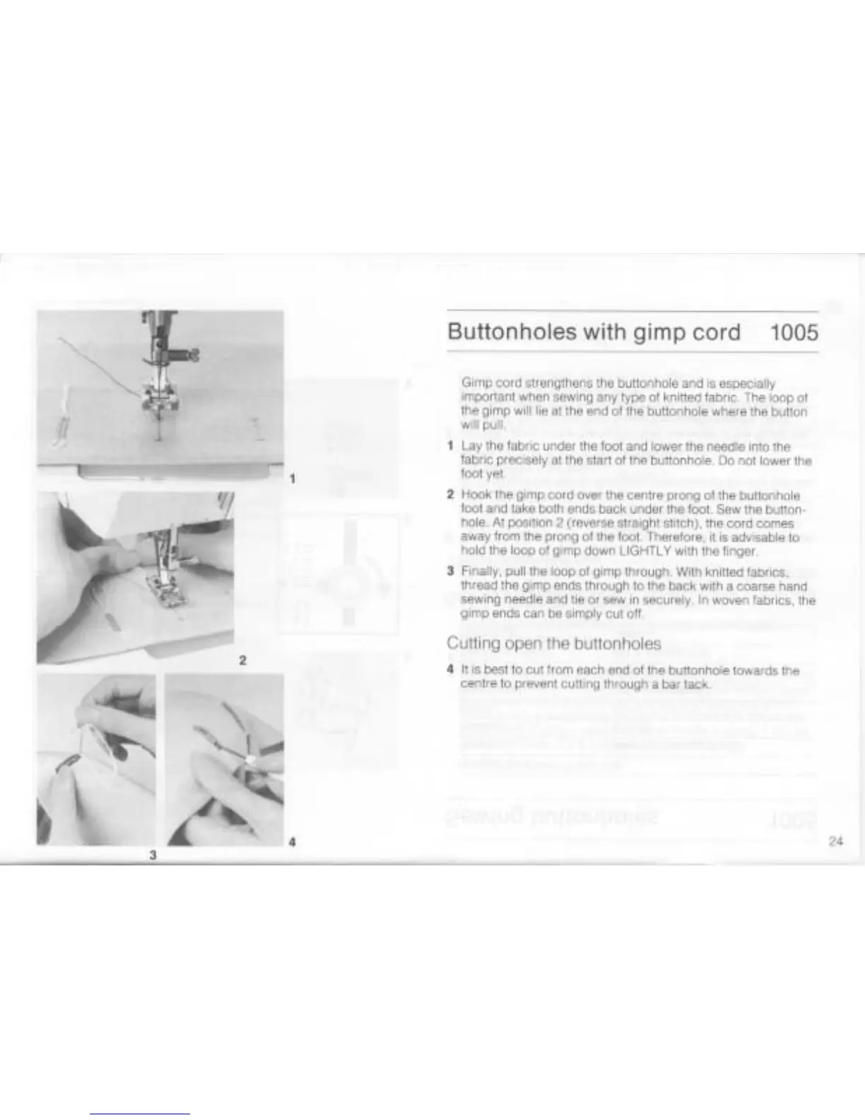Bernina 1004 - Buttonholes with Gimp Cord (Model 1005); Reinforcing Buttonholes with Gimp Cord