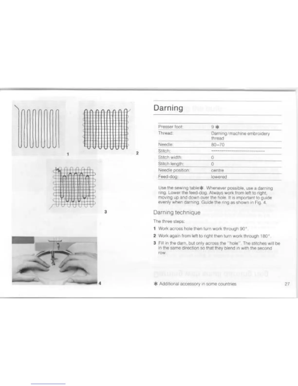 Bernina 1004 - Darning Techniques; Darning Procedure