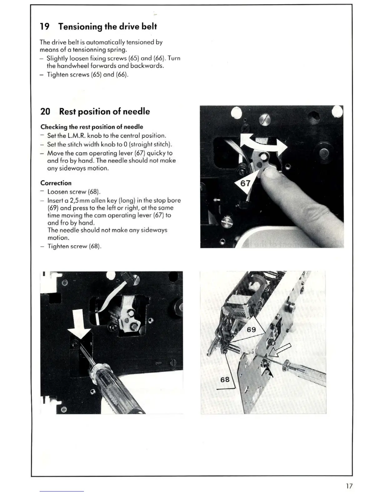 Bernina 1020 - Tensioning the Drive Belt; Rest Position of Needle
