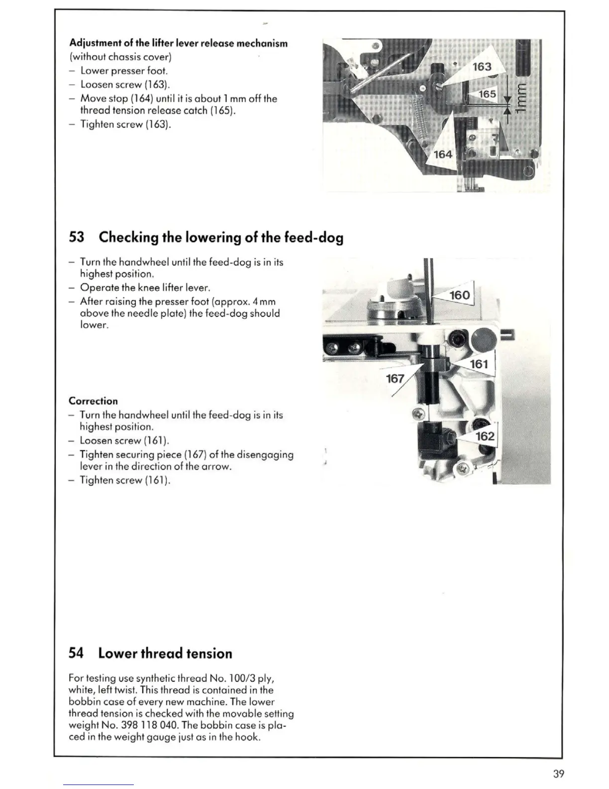 Bernina 1020 - Checking the Lowering of the Feed-Dog; Lower Thread Tension