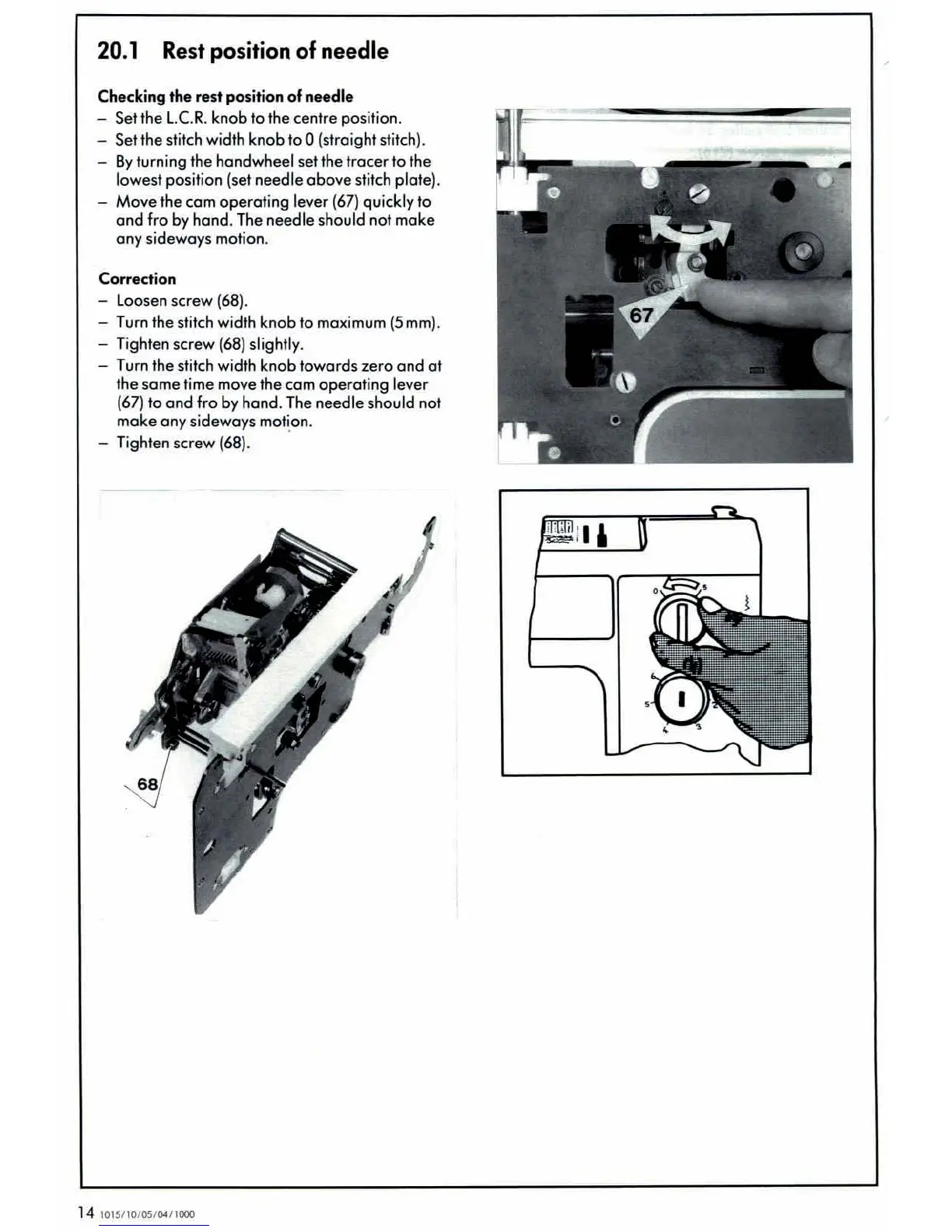 Bernina 1020 - Rest Position of Needle;Checking and Correction