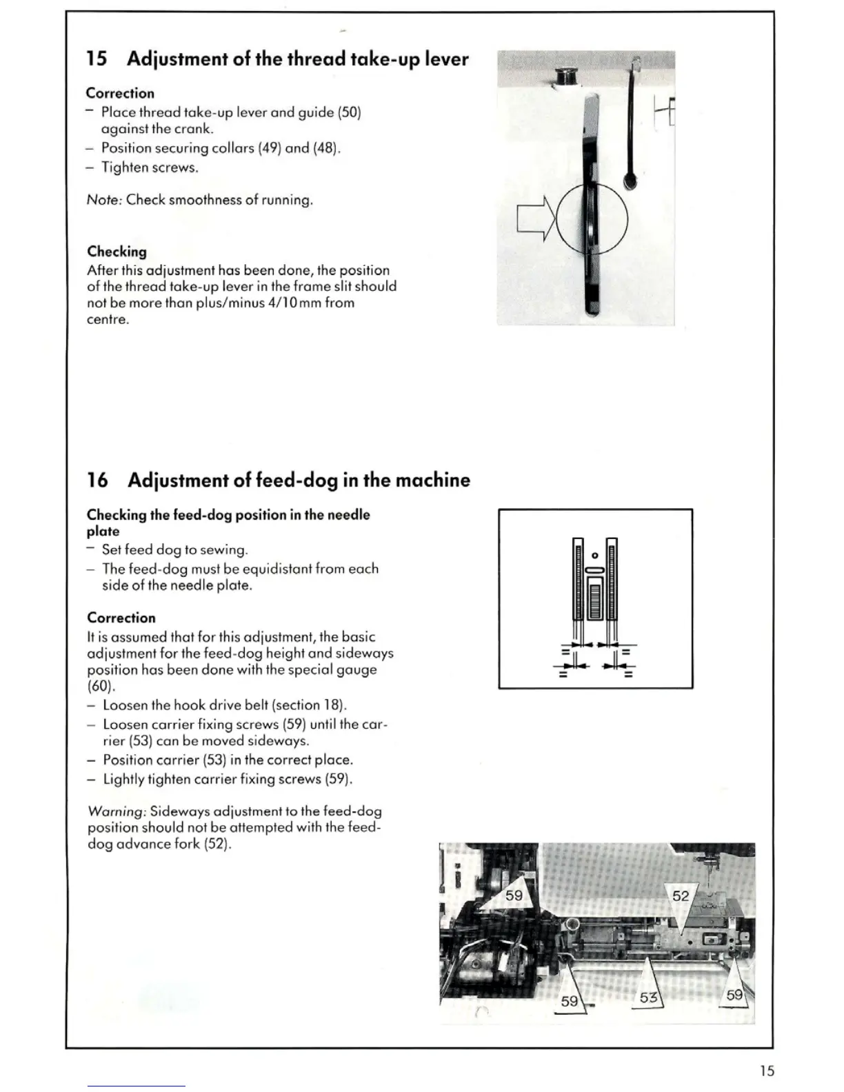 Bernina 1030 - Adjustment of the Thread Take-Up Lever; Adjustment of Feed-Dog in the Machine