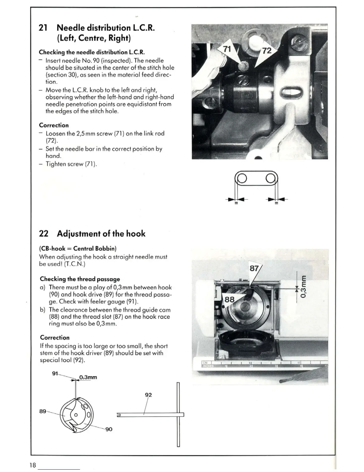 Bernina 1030 - Needle Distribution LCR (Left, Centre, Right); Adjustment of the Hook