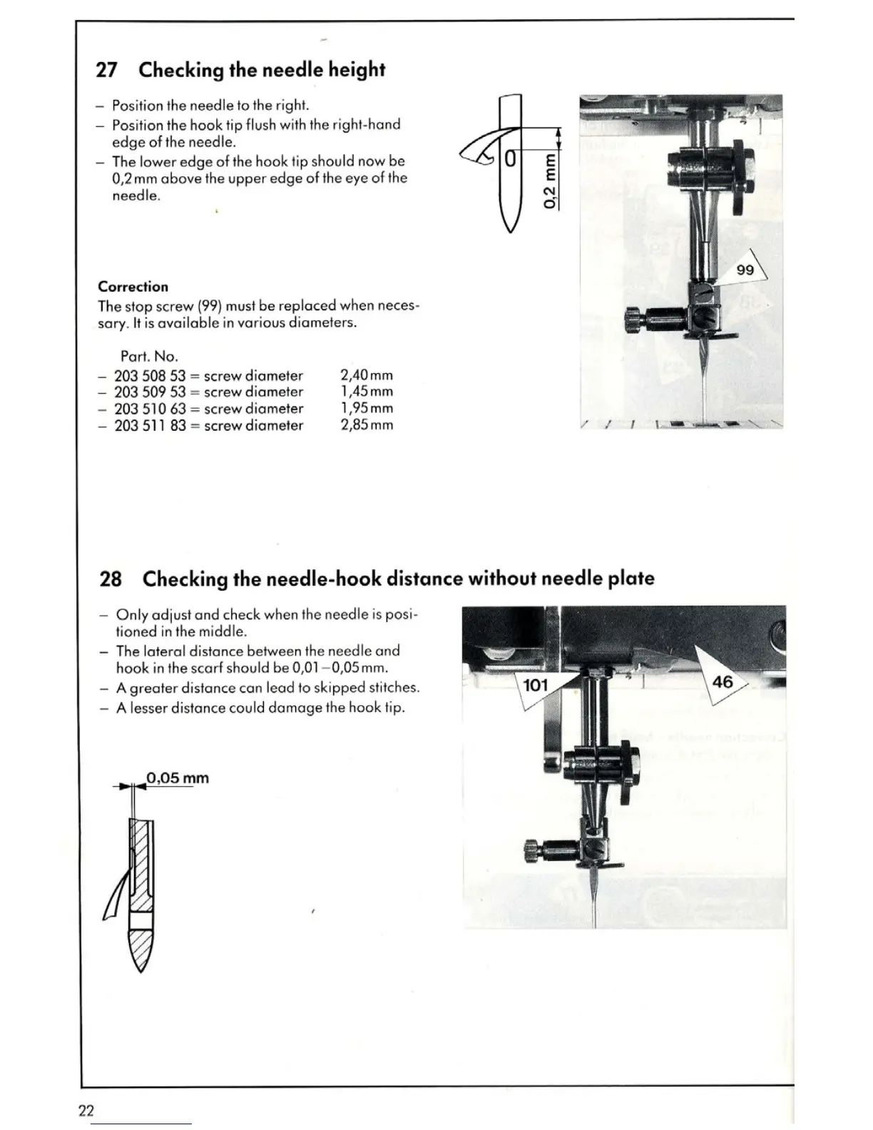 Bernina 1030 - Checking the Needle Height; Checking the Needle-Hook Distance Without Needle Plate