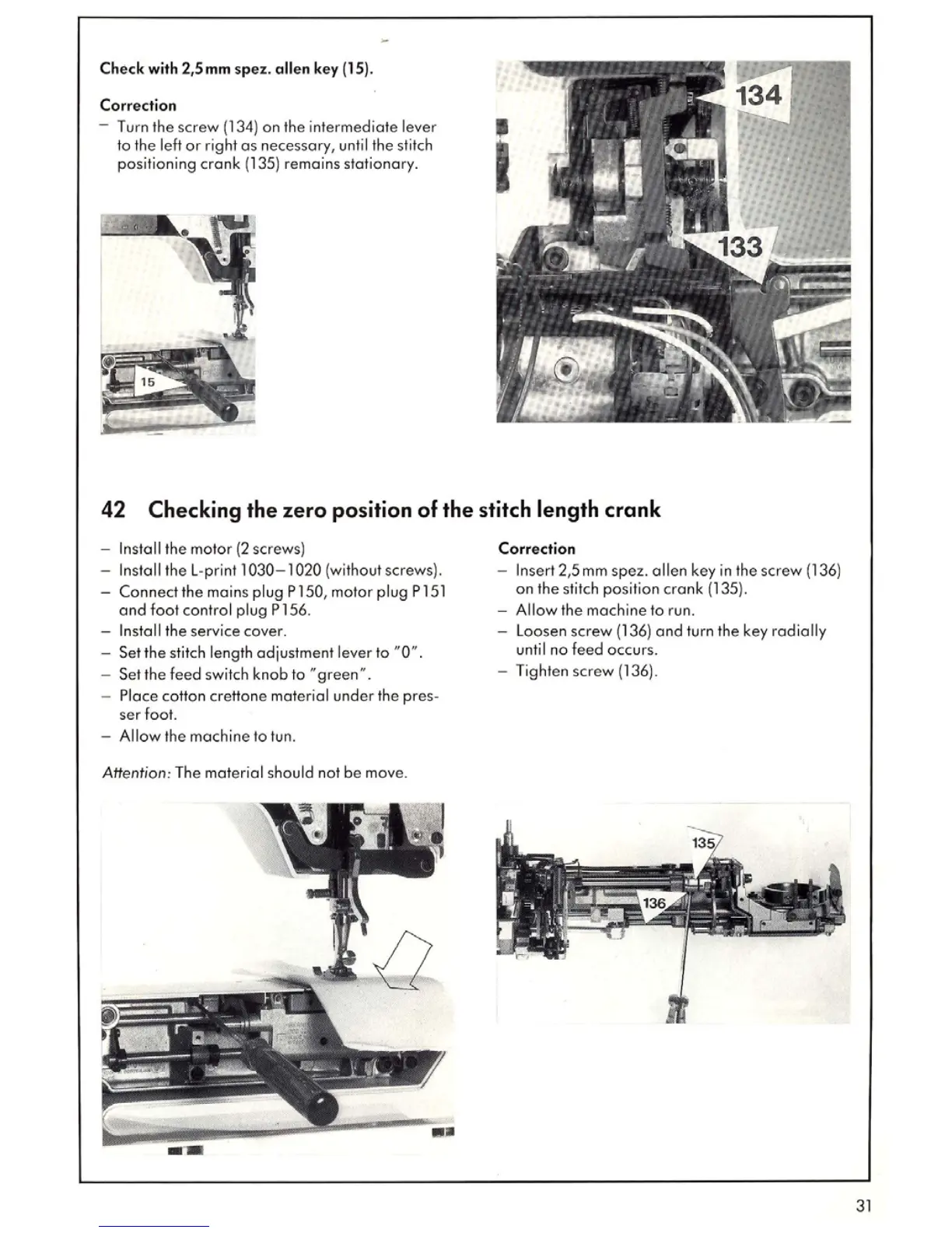 Bernina 1030 - Checking the Zero Position of the Stitch Length Crank