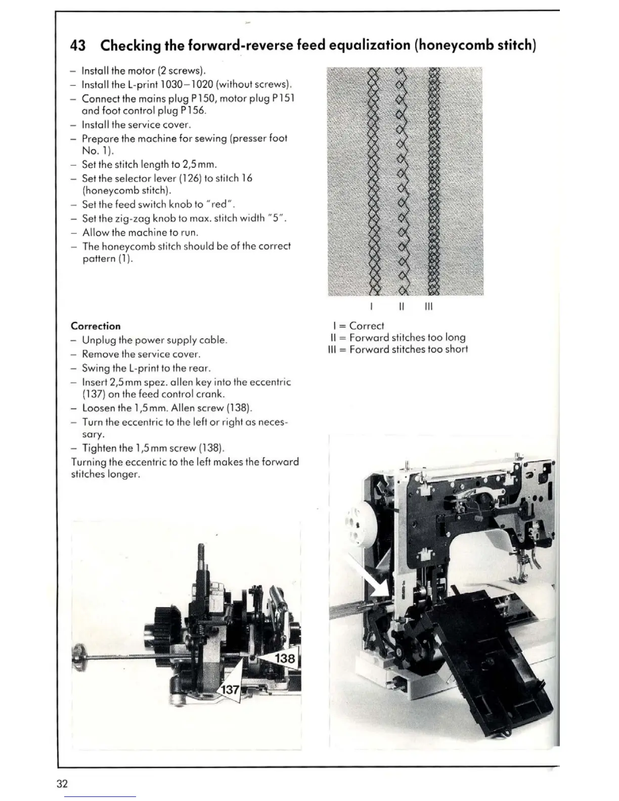 Bernina 1030 - Checking the Forward-Reverse Feed Equialization (Honeycomb Stitch)
