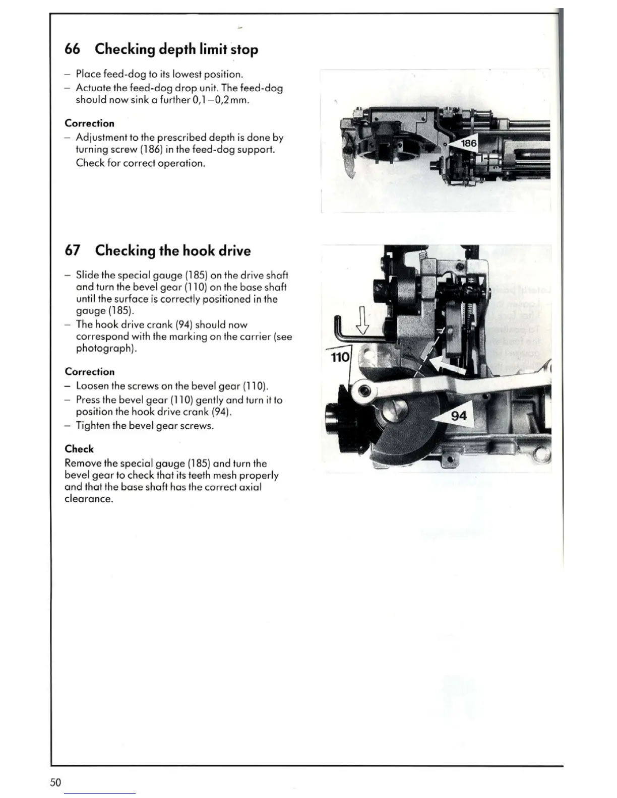 Bernina 1030 - Checking Depth Limit Stop; Checking the Hook Drive