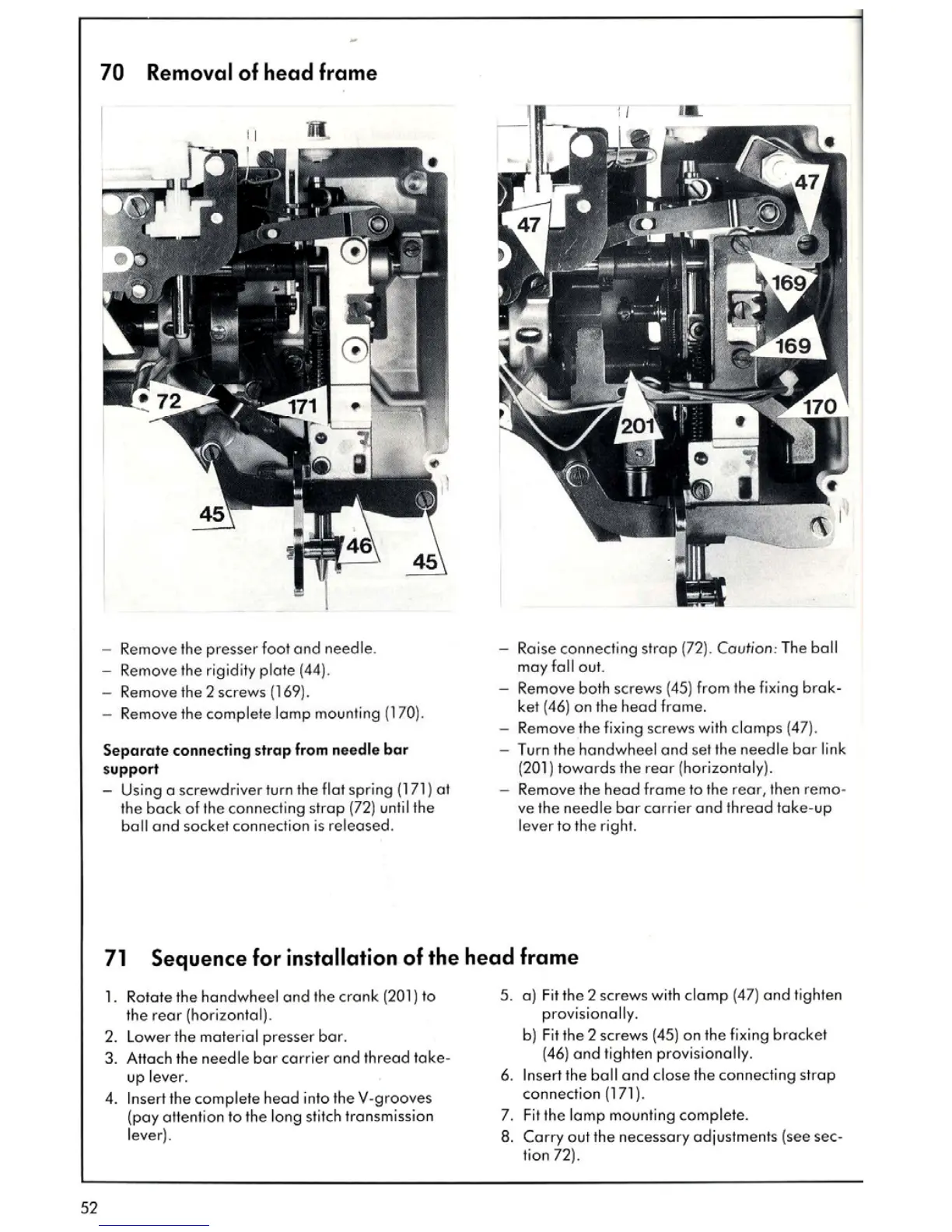 Bernina 1030 - Removal of Head Frame; Sequence for Installation of the Head Frame