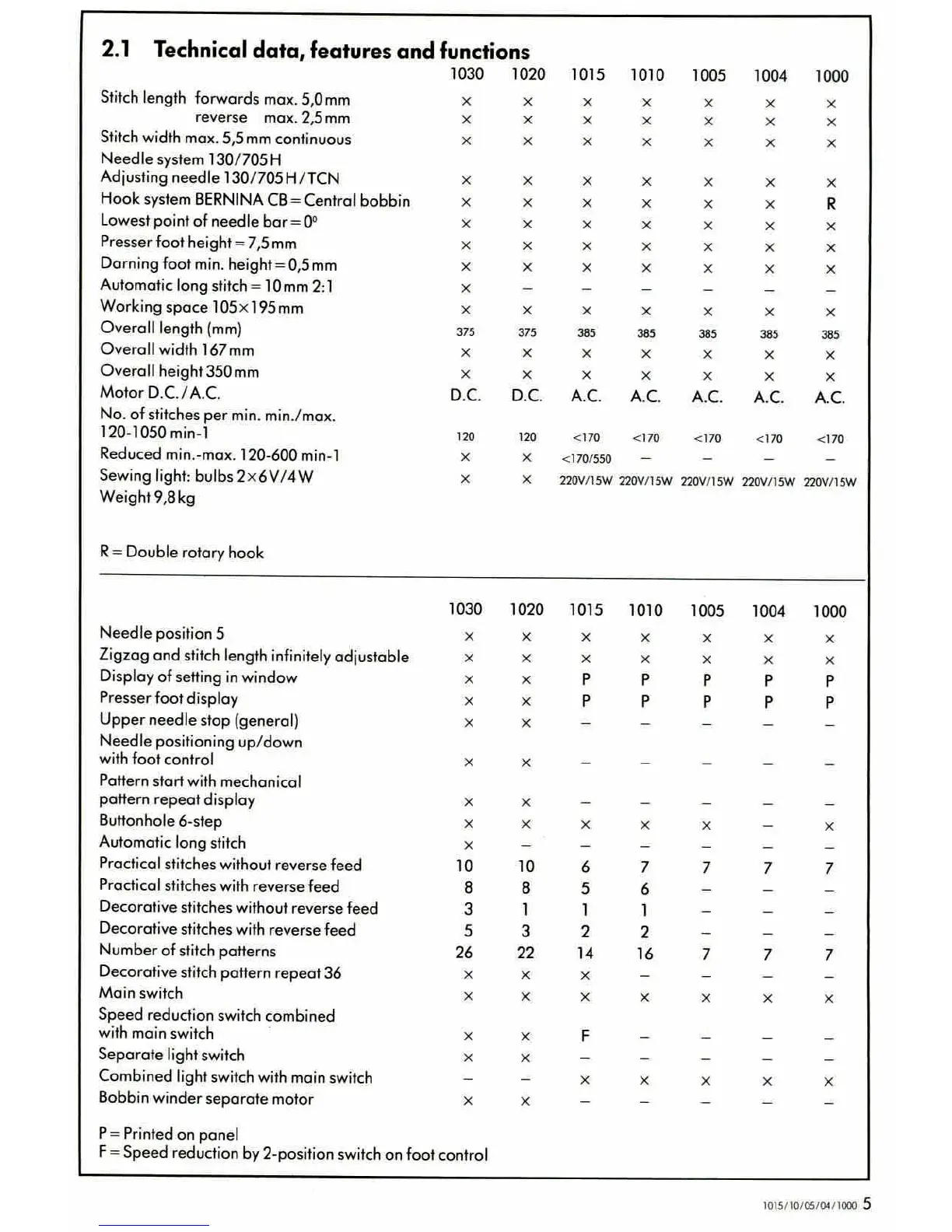Bernina 1030 - Technical Data, Features and Functions