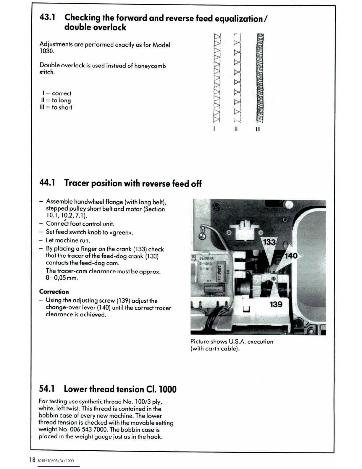Bernina 1030 - Checking the Forward and Reverse Feed Equalization;Double Overlock; Tracer Position with Reverse Feed off; Lower Thread Tension Cl. 1000