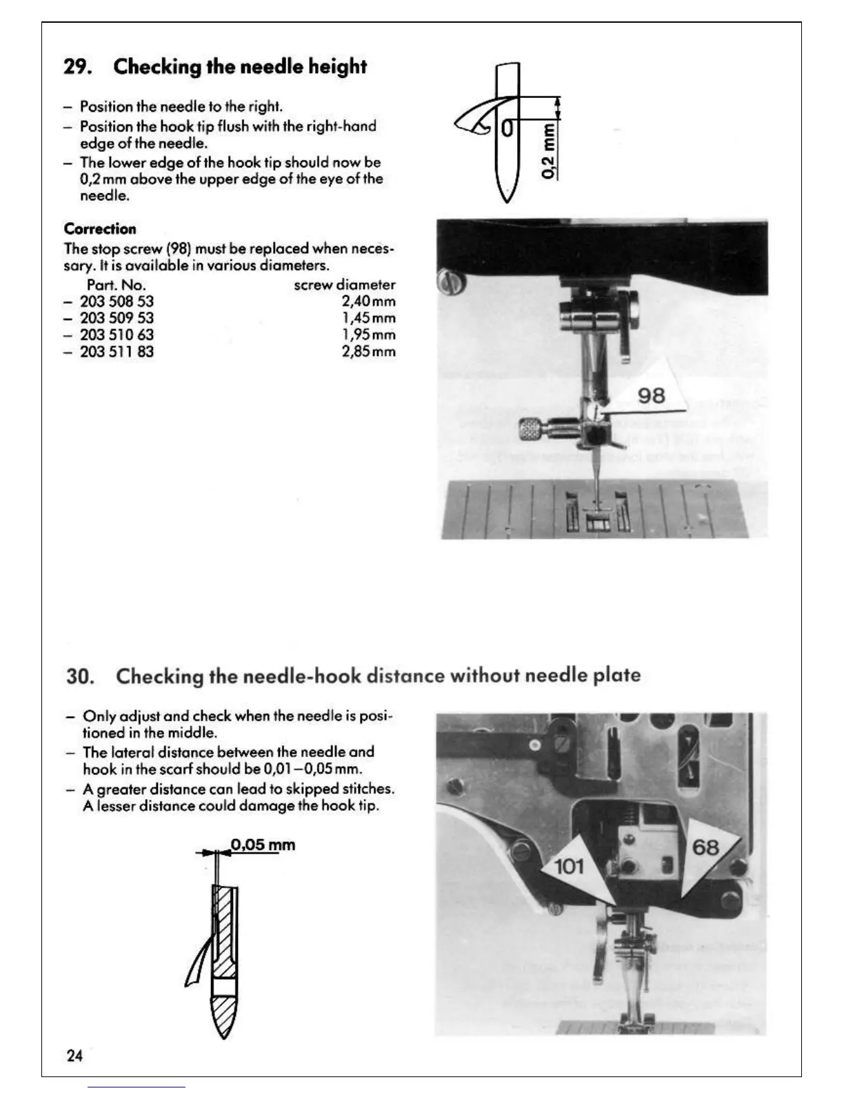 Bernina 1130 - Checking Needle Height; Needle Height Correction; Needle-Hook Distance Check (No Plate); Needle-Hook Distance Correction (No Plate)