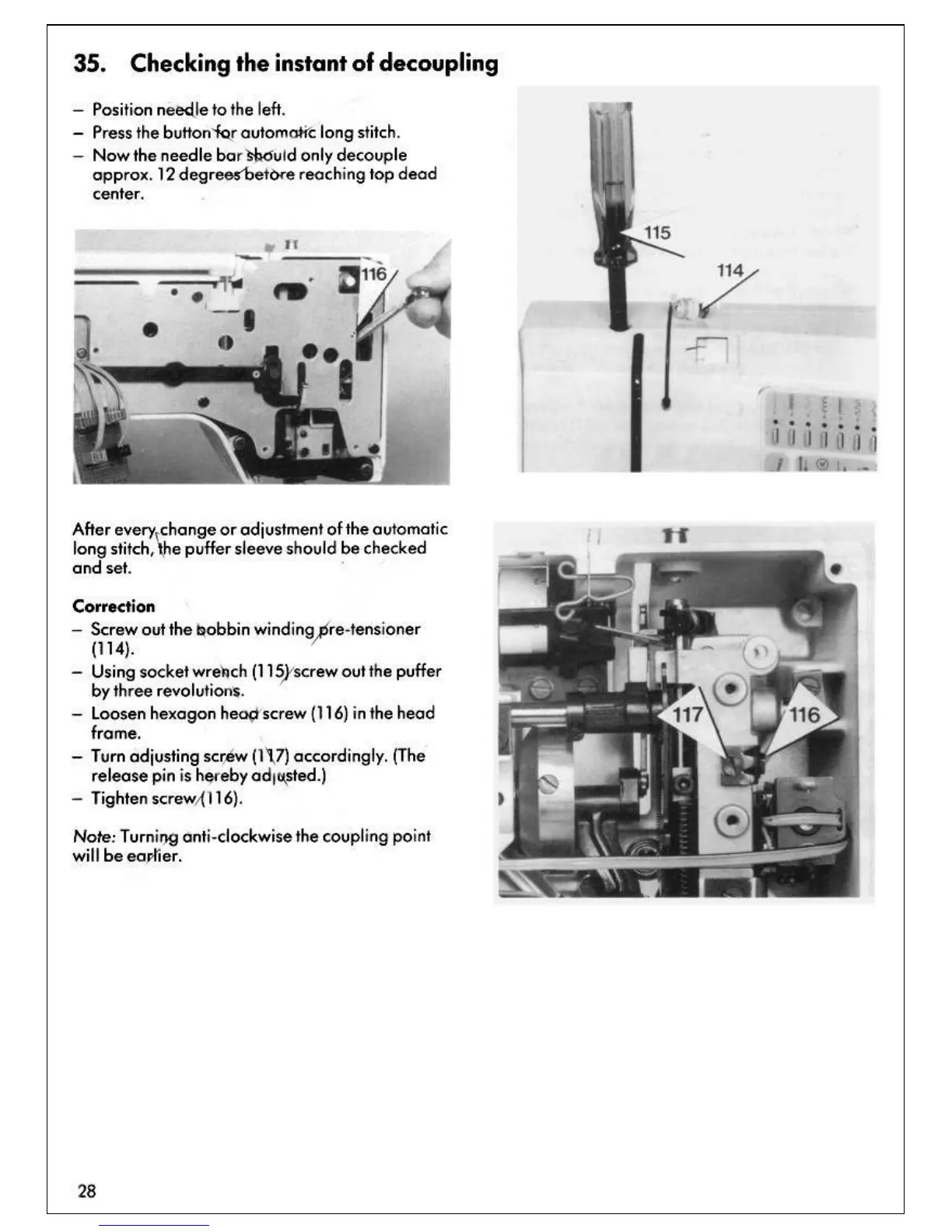 Bernina 1130 - Checking Decoupling Instant; Decoupling Instant Correction