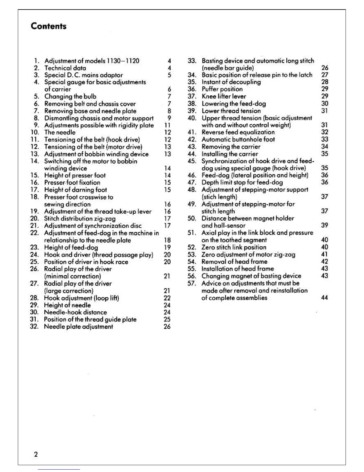 Bernina 1130 - Contents